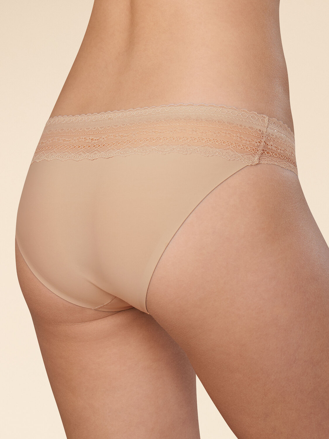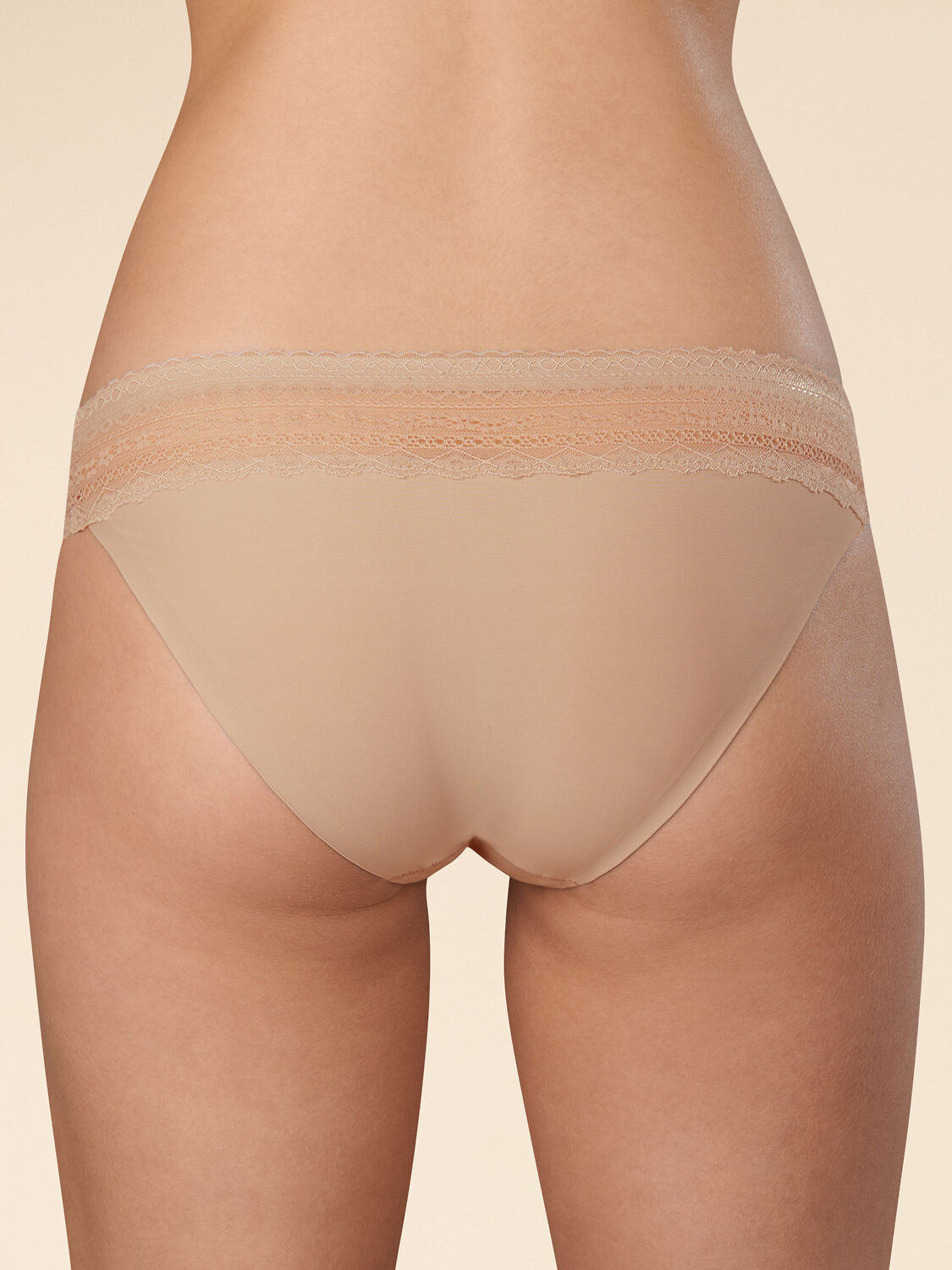 Женские трусы-слипы с низкой посадкой. Изготовлены по бесшовной технологии с минимум швов. Кромки по ноге и по талии подогнуты и приклеены, хлопковая приклеенная ластовица. Нежное геометричное кружево по линии талии высотой 5 см – не передавливает тело и не натирает кожу. Модель оценят те, кто ищет незаметное и невесомое белье на каждый день или особого случая. Модель представлена в универсальных цветах – черный, темно-синий, кремовый, молочный, охра, хаки и шоколадный. Выбирайте нужный размер по таблице размеров на фото. Цвет товара на экране вашего устройства может отличаться от цвета изделия вживую. Товар возврату и обмену не подлежит.