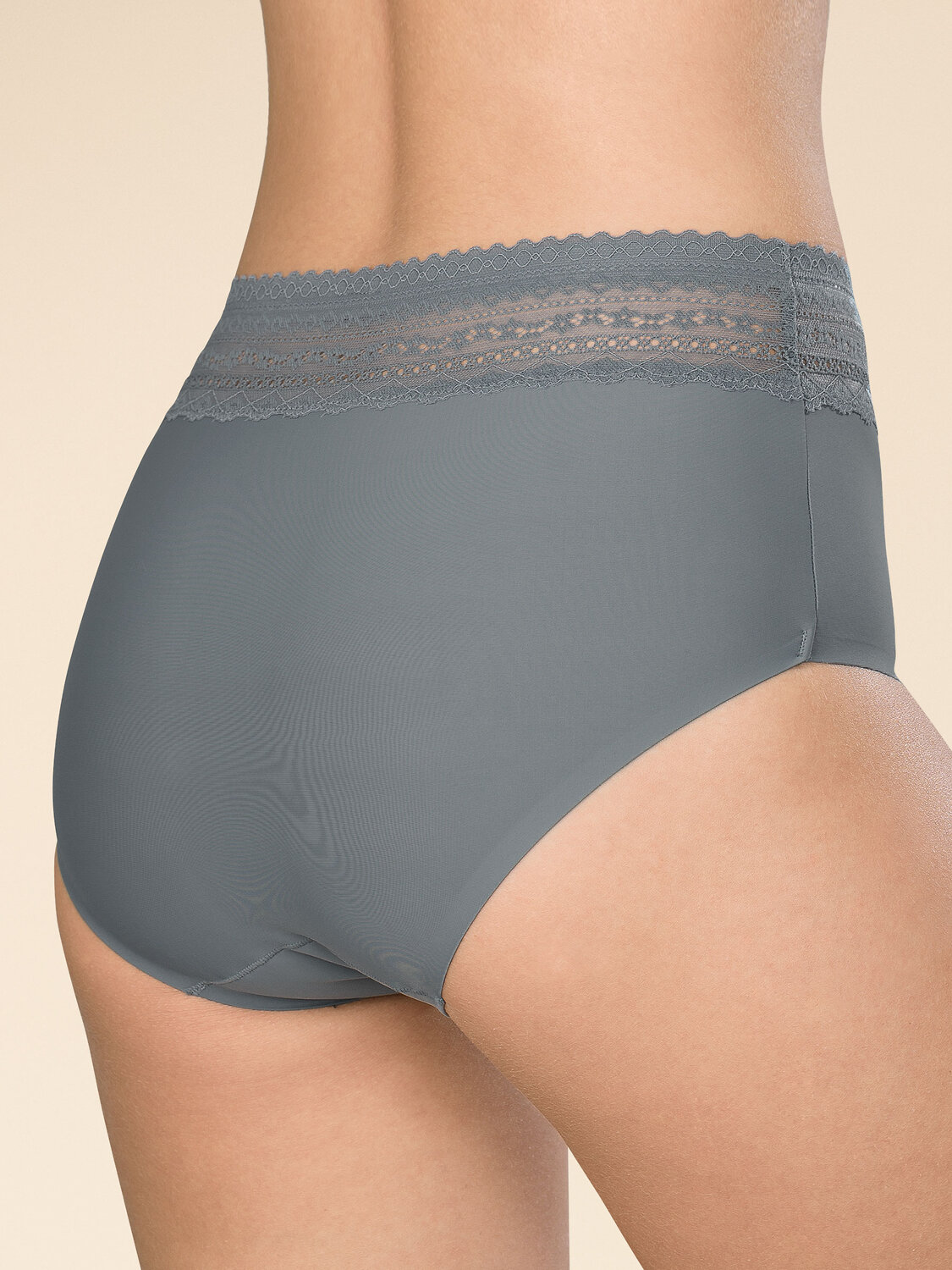 Женские трусы-шорты с высокой посадкой. Изготовлены по бесшовной технологии с минимум швов. Кромки по ноге и по талии подогнуты и приклеены, хлопковая приклеенная ластовица. Нежное геометричное кружево по линии талии высотой 5 см – не передавливает тело и не натирает кожу. Модель оценят те, кто ищет незаметное и невесомое белье на каждый день или особого случая. Модель представлена в универсальных цветах – черный, темно-синий, темно-серый, кремовый, молочный, охра, хаки и шоколадный. Выбирайте нужный размер по таблице размеров на фото. Цвет товара на экране вашего устройства может отличаться от цвета изделия вживую. Товар возврату и обмену не подлежит. Темно-серый