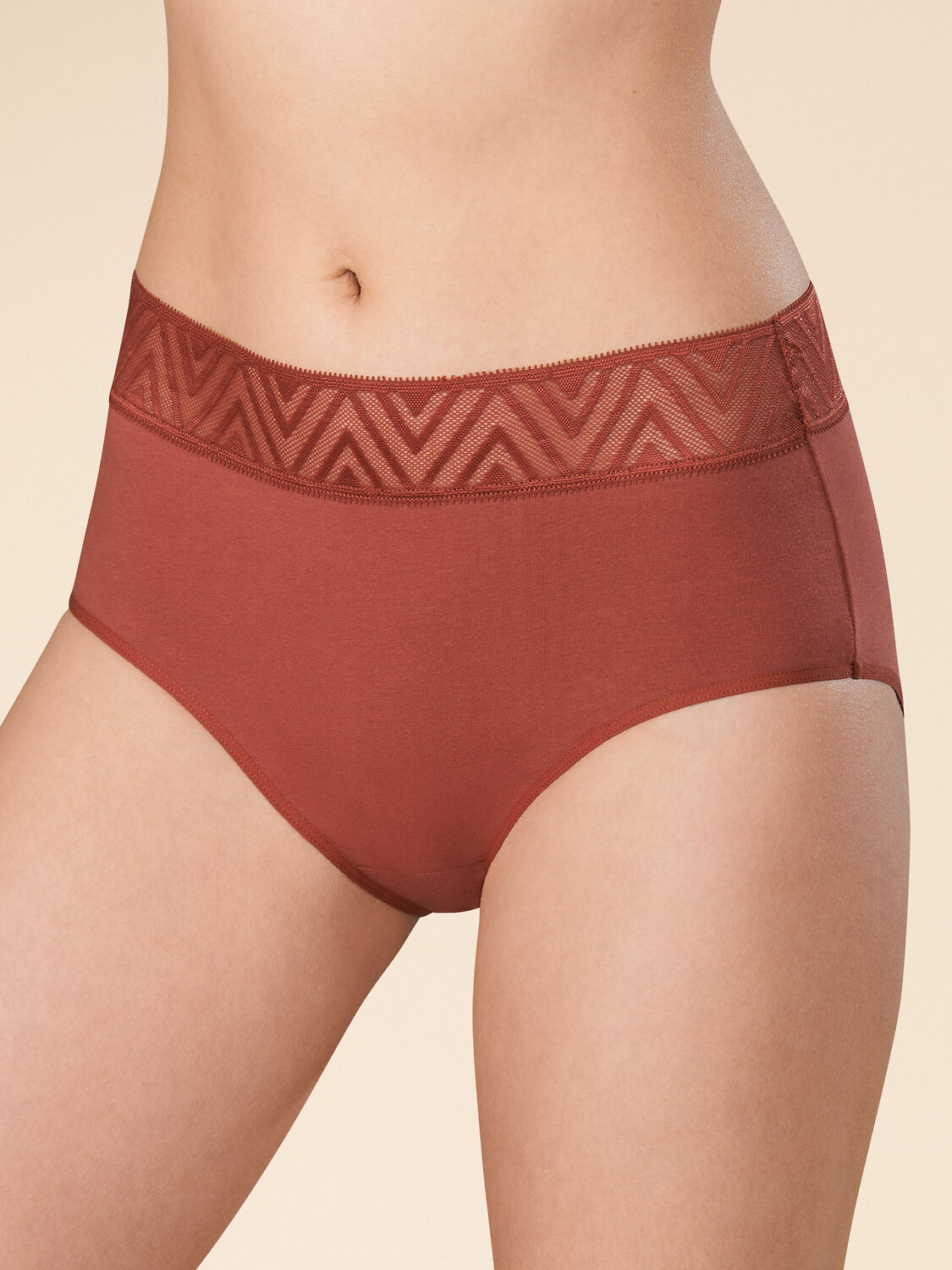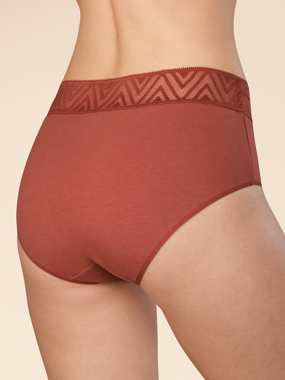 Женские трусы-шорты с высокой посадкой. Приятная на ощупь ткань с высоким содержанием хлопка и небольшим содержанием эластана – трусы сохраняют форму и не выцветают даже после частых стирок. Широкая обработка по линии талии мягким кружевным эластиком – не вызывает дискомфорта и не передавливает тело. Нежное геометричное кружево актуально в этом сезоне. Модель подчеркивает изящество фигуры и создаёт комфорт. Идеально подходят для повседневной носки, для сна и для романтических встреч. Модель представлена в универсальных цветах – черный, белый, бордовый, джинс, зеленый, морская волна, песочный и пудра. Выбирайте нужный размер по таблице размеров на фото. Цвет товара на экране вашего устройства может отличаться от цвета изделия вживую. Товар возврату и обмену не подлежит. Терракотовый