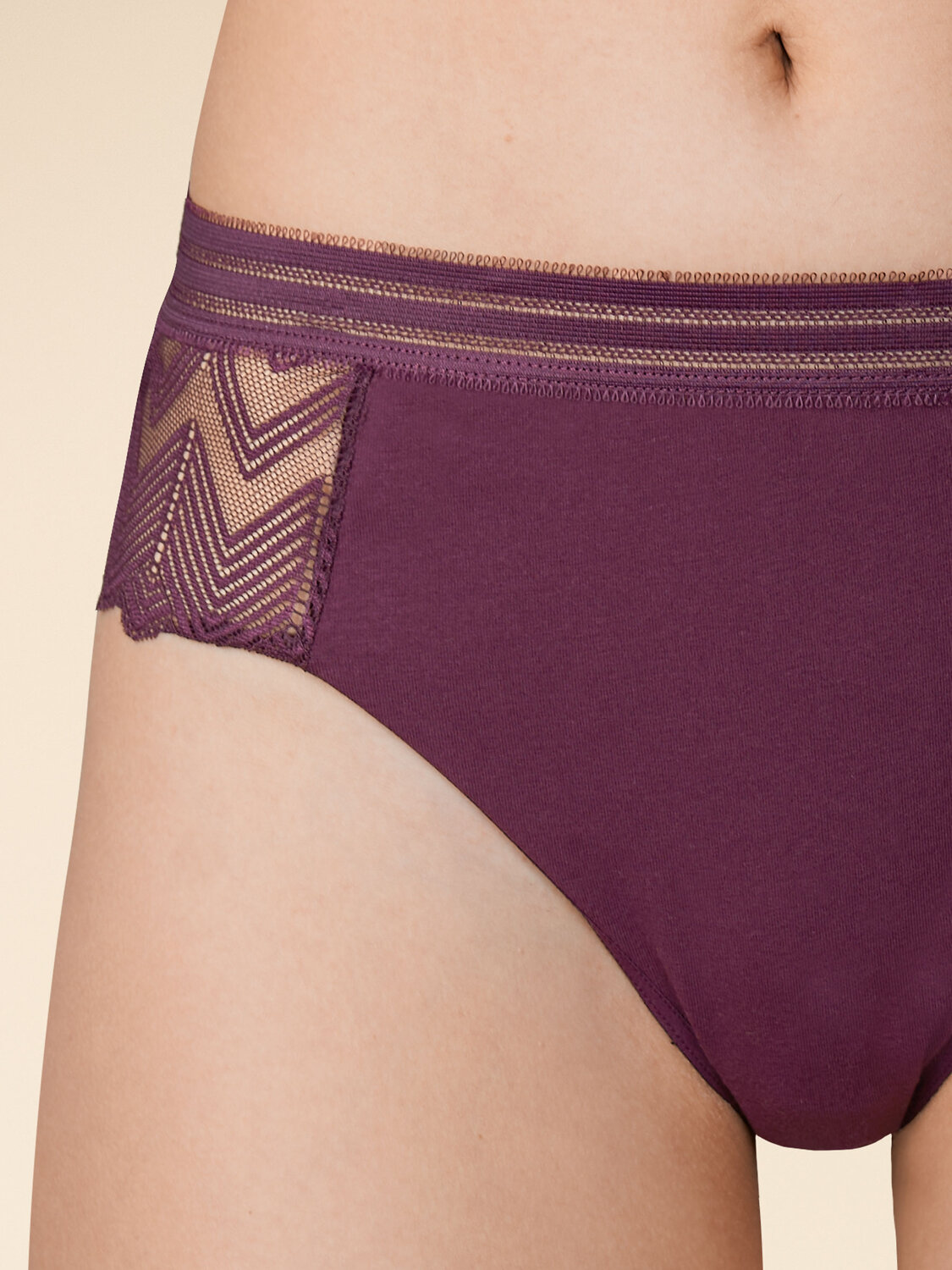 Женские трусы-слипы с высокой посадкой для влюбленных в красивый и активный образ жизни. Ткань с высоким содержанием хлопка и небольшим содержанием эластана. По линии талии мягкий принтованный эластик - не передавливает тело, не натирает кожу. Обработка по ноге эластиком для сохранения формы. Нежное геометричное кружево отражает тренд на умный дизайн. Модель представлена в универсальных цветах – черный, молочный, красный, зеленый, морская волна и пудра. Выбирайте нужный размер по таблице размеров на фото. Цвет товара на экране вашего устройства может отличаться от цвета изделия вживую. Товар возврату и обмену не подлежит. Черника