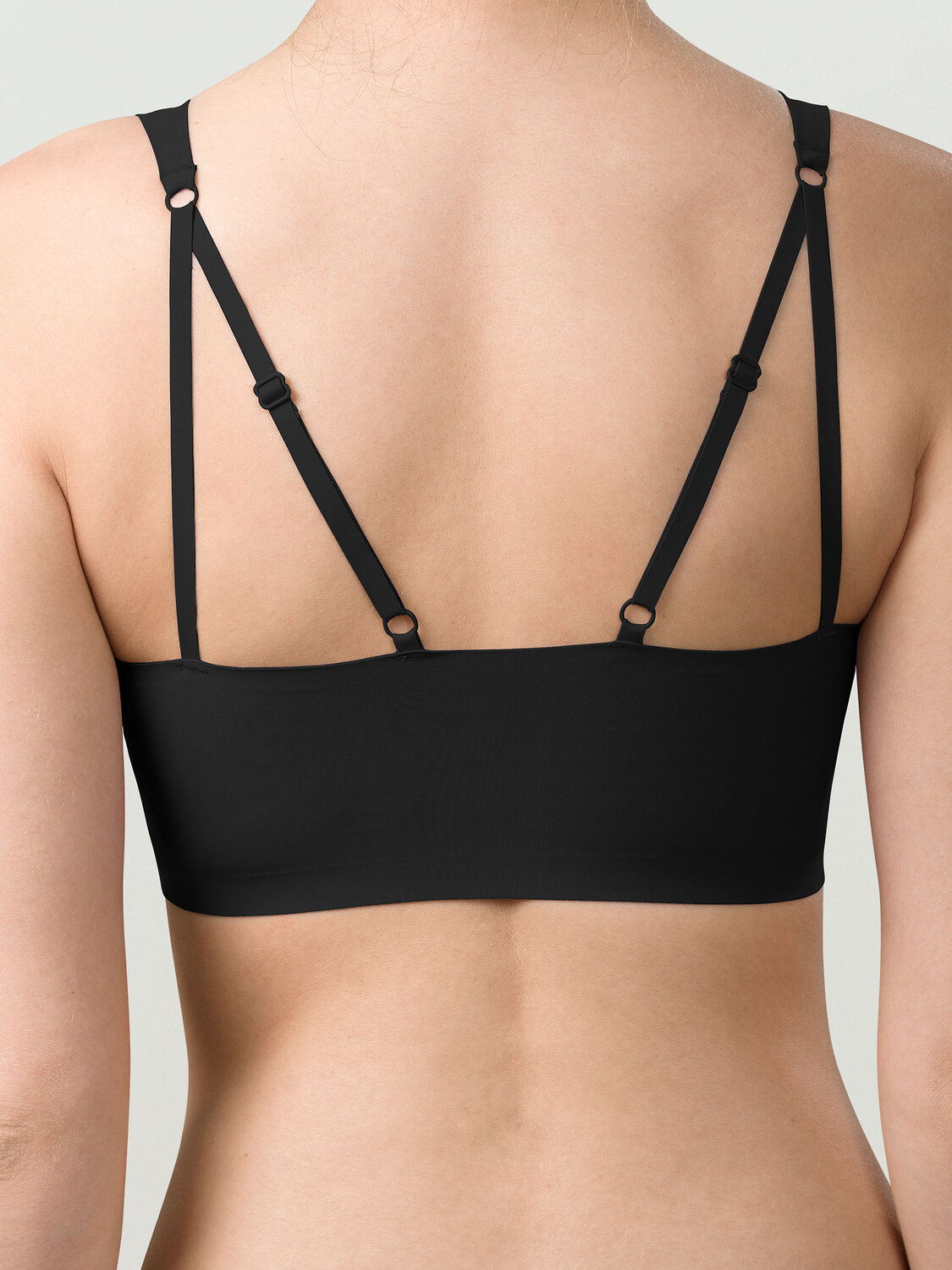 Женский бельевой топ. Изготовлен по бесшовной технологии с минимумом швов. Боковые плоские раздвижные швы, края горловины, проймы и низа изделия подогнуты и приклеены. Топ максимально невидим под одеждой, не натирает, комфортно сидит на теле. Съемные формованные чашки поддерживают грудь и создают красивый объем. Продуманное расположение регулируемых бретелей по спинке делают топ комфортным в носке, лямки не спадают с плеч. Этот топ станет идеальным функциональным нижнем бельем на каждый день.