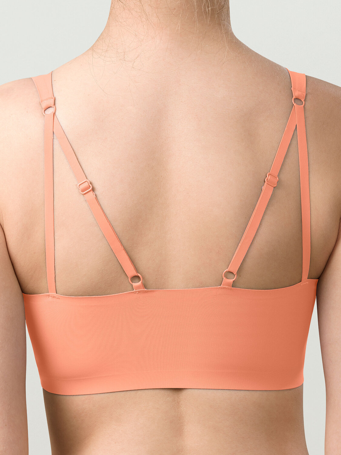 Женский бельевой топ. Изготовлен по бесшовной технологии с минимумом швов. Боковые плоские раздвижные швы, края горловины, проймы и низа изделия подогнуты и приклеены. Топ максимально невидим под одеждой, не натирает, комфортно сидит на теле. Съемные формованные чашки поддерживают грудь и создают красивый объем. Продуманное расположение регулируемых бретелей по спинке делают топ комфортным в носке, лямки не спадают с плеч. Этот топ станет идеальным функциональным нижнем бельем на каждый день.