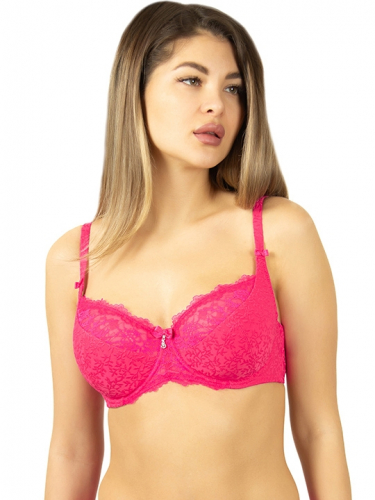 Маджента 080C, 080D, 080E, 080F, 080G, 085C, 085D, 085E, 085F, 085G, 090C, 090D, 090E, 090F, 095C, 095D, 095E Бюстгальтер полудублированный на стане, на каркасах .Нижние детали чашек на дубляже с хлопком. Верхние детали чашек из эластичного кружева продублированы мягкой сеткой. Края чашек усилены эластичной тесьмой. Передняя и боковые детали стана укреплены монокапроном, в боковых швах упругие пластины. Нижние детали чашек и стан из жаккардового эластичного полотна. Регулируемые бретели «anti-slip» спереди задекорированы жаккардовым полотном. 90% полиамид, 10% эластан