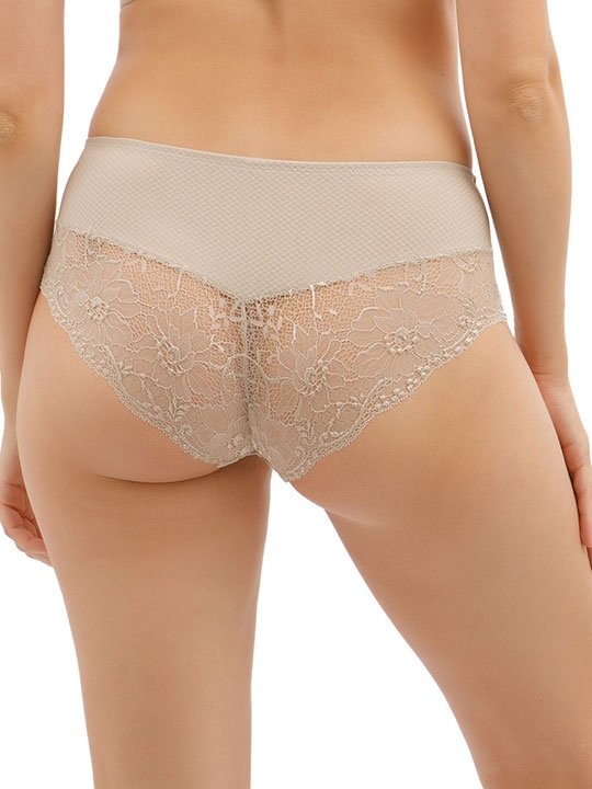 Фраппе 38, 40, 42, 44, 46, 48 Трусы макси кружевные со средней посадкой из эластичного полотна с рисунком 3D-эффект. Передняя деталь продублирована эластичной сеткой. Кружево на передней детали по линии бедер, переходящее на заднюю деталь. Ластовица из хлопкового трикотажного полотна. Коллекция "Stella". 81% полиамид, 14% эластан, 5% хлопок