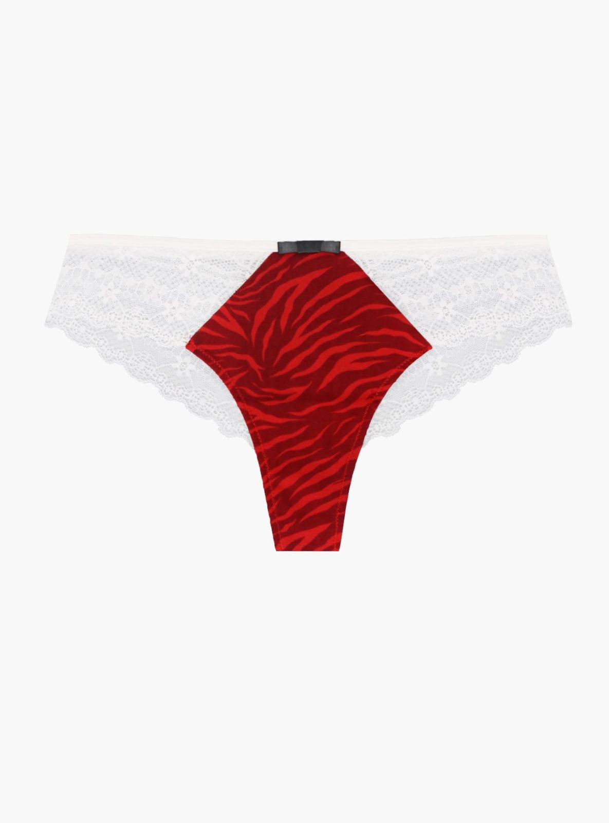 Трусики-стринги из хлопка, красного цвета, с принтом, с кружевными вставками белого цвета, с кружевной белой задней частью, на мягкой резинке.