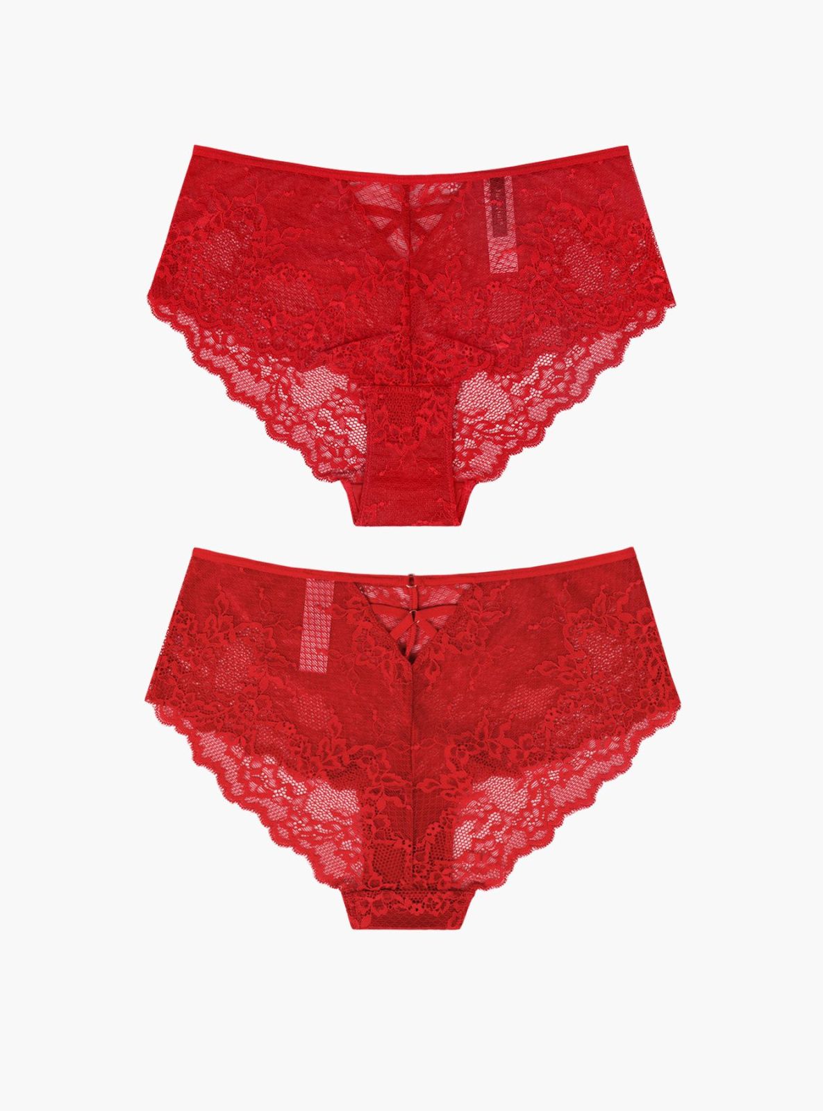 Кружевные трусы бразилиано из эластичного полиамида — прекрасный выбор для ценителей женственного нижнего белья. Пленительный оттенок красного цвета придает образу неотразимую притягательность, а небольшое количество эластана в составе делает белье долговечным и тянущимся.