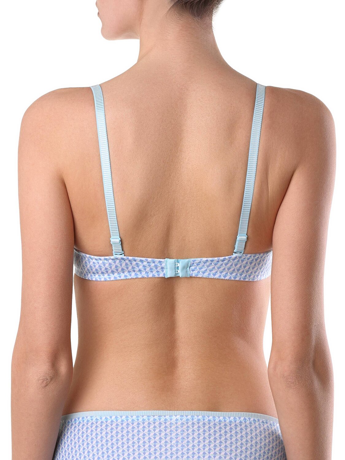- бретели, отстегивающиеся на спинке. Голубой набивной