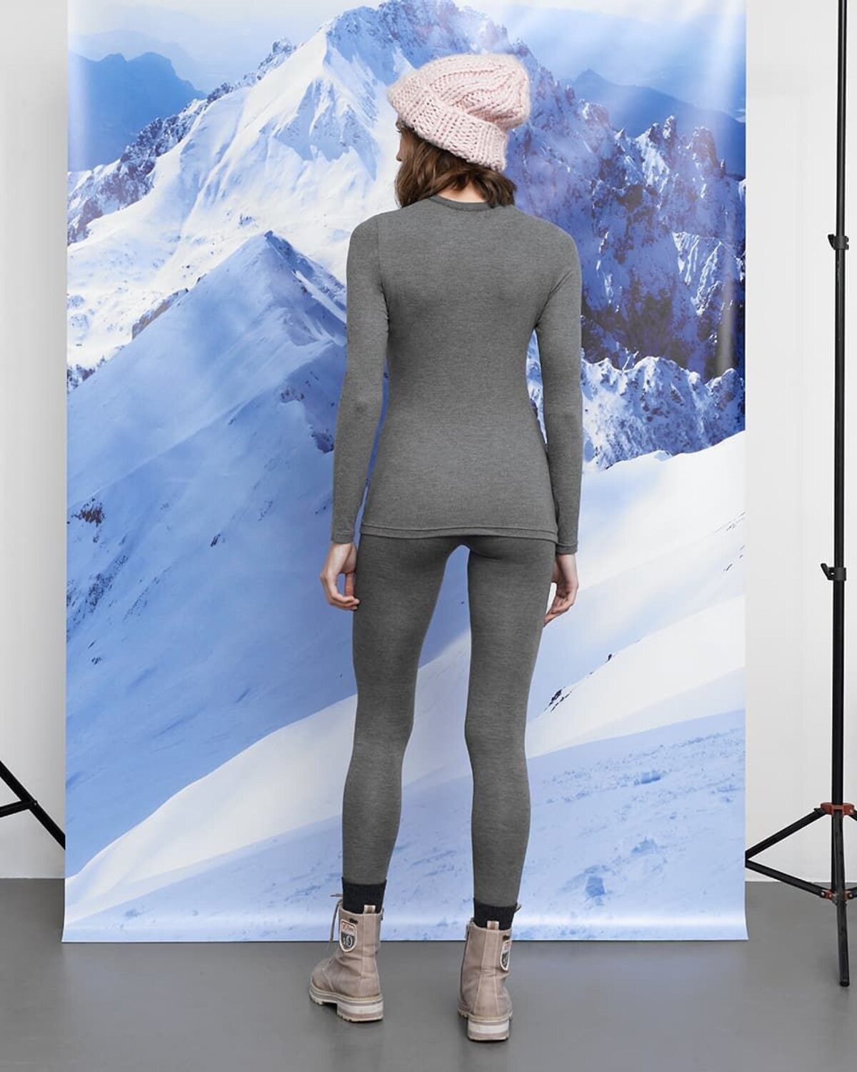 плоскошовной машине с застилом. Перед и спинка цельнокроенные. Низ джемпера и рукавов обработан вподгибку на 2х игольной плоскошовной машине. Легинсы плотно облегаюшие бедра и ноги по всей длине. Без боковых швов, с высокой линией талии и цельнокроенным поясом, с эластичной резиной внутри.Нижние срезы обработаны швом вподгибку на 2х игольной плоскошовной машине. Шов сидения обработан швом «флэт-лок».