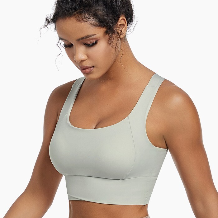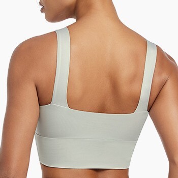 Топ на толстых бретелях с округлым вырезом горловины изготовлен из 80% полиамида и 20% спандекса. Формованные чашки  обладают высокой воздухопроницаемостью и оказывают естественную поддержку груди, а упругая резинка по низу изделия обеспечит плотное прилегание, при этом не оставив следов на коже.