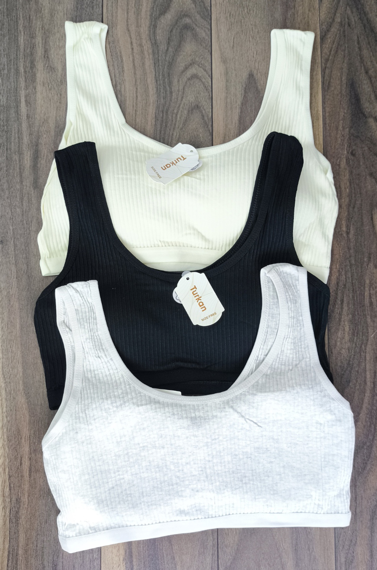 Топик со съёмными поролоновыми чашками  на широких бретелях. Модель единого универсального размера, из мягкого, эластичного и приятного к телу нейлона "в рубчик". Производство Китай.