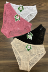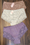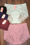 Однотонные трусики высокой посадки с гипюровой нашивной вставкой. Хлопковая ткань качества "люкс", мягкая, эластичная и очень приятная к телу.  Производство фабричный Китай.