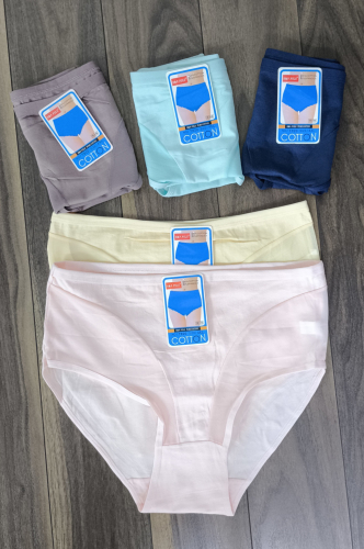 Женские хлопковые трусики с набивным рисунком "горох" из ткани в полоску. Комфортная средняя посадка, узкая резинка. Производство Китай.