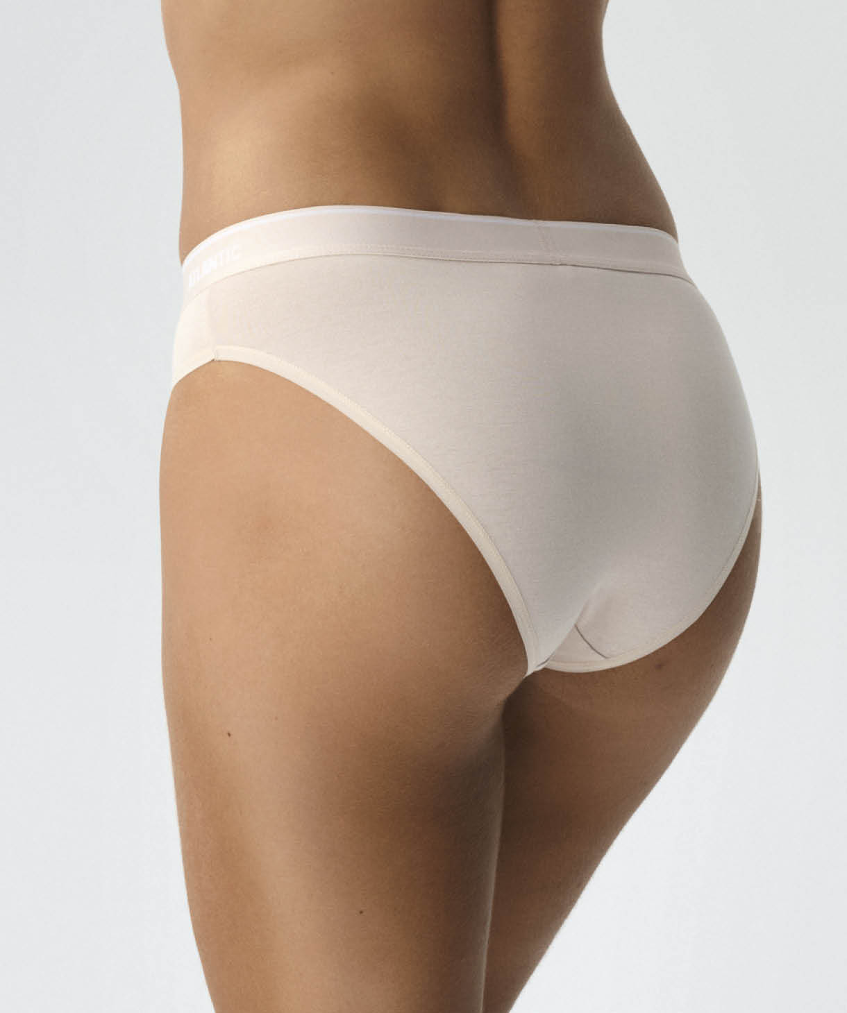 Модель со средней линией талии и универсальной шириной по бокам, закрыта сзади. Благодаря высоко вырезанной линии бедра, визуально удлиняет ноги. Идеально подходит для повседневной носки.