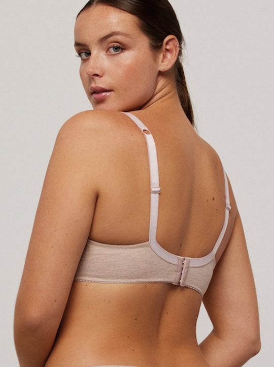 Бежевый 90D(75DEUR), 95D(80DEUR) Бюстгальтер из органического хлопка с добавлением эластана. Поролоновая бескостная чашка. Для дополнительной поддержки сбоку имеются косточки, а так же широкий пояс на 3 ряда крючков. Европейский размер соответствует российскому размеру! 95% органический хлопок, 5% эластан