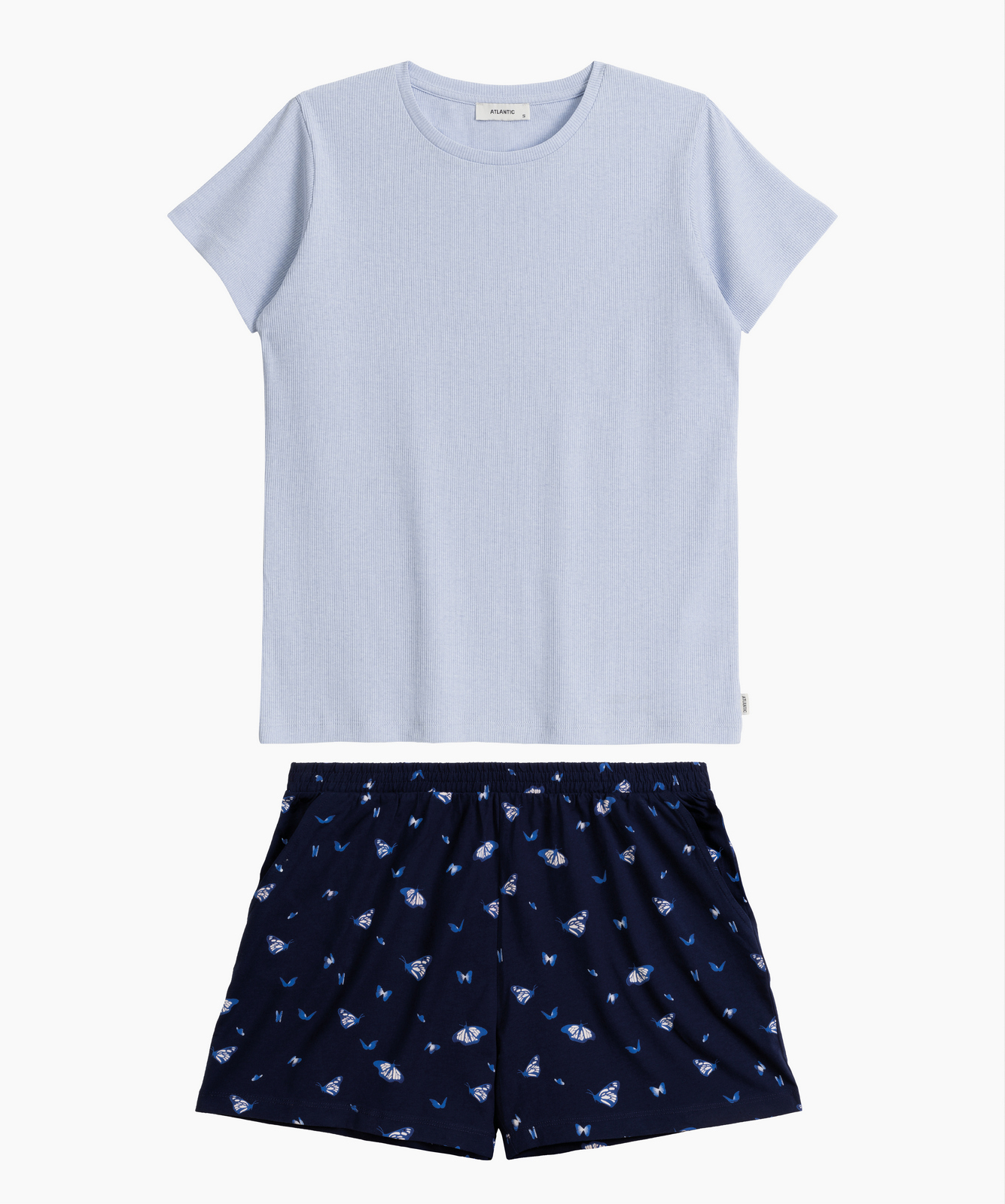 Уютный пижамный комплект от польского бренда Atlantic создан для комфортного отдыха и спокойного сна. В набор входит мягкая футболка в рубчик, которая состоит из хлопка с добавлением полиэстера и удобные шорты из 100% хлопка. Футболка с круглым вырезом и короткими рукавами сочетается со стильными шортами, украшенными нежным принтом в виде бабочек и дополненными практичными карманами. Пижама отличается идеальной посадкой, обеспечивает свободу движений и приятные тактильные ощущения. Нежное сочетание голубого меланжа и насыщенного темно-синего цвета создает элегантный образ для домашнего отдыха. Качественные материалы гарантируют комфорт и долговечность даже после многократных стирок. Этот комплект - прекрасный выбор для тех, кто ценит удобство, качество и стиль в повседневной жизни. Пижама Atlantic станет отличным подарком для себя или близких. Вы можете приобрести пижаму Атлантик NLP-490/01 из наличия по самым выгодным ценам.