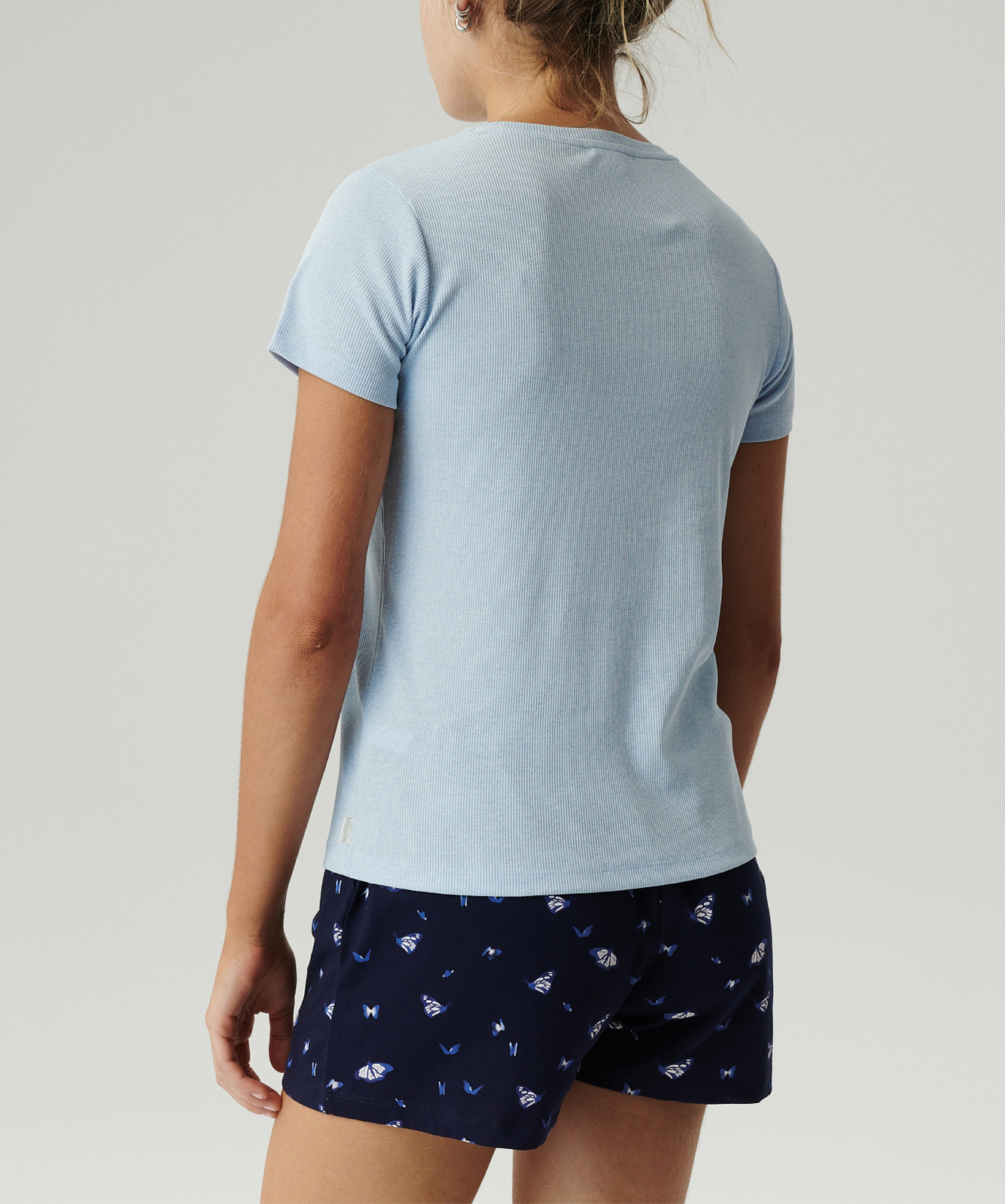 Пижама состоит из футболки с коротким рукавом и шорт. Изготовлена из хлопка высочайшего качества.