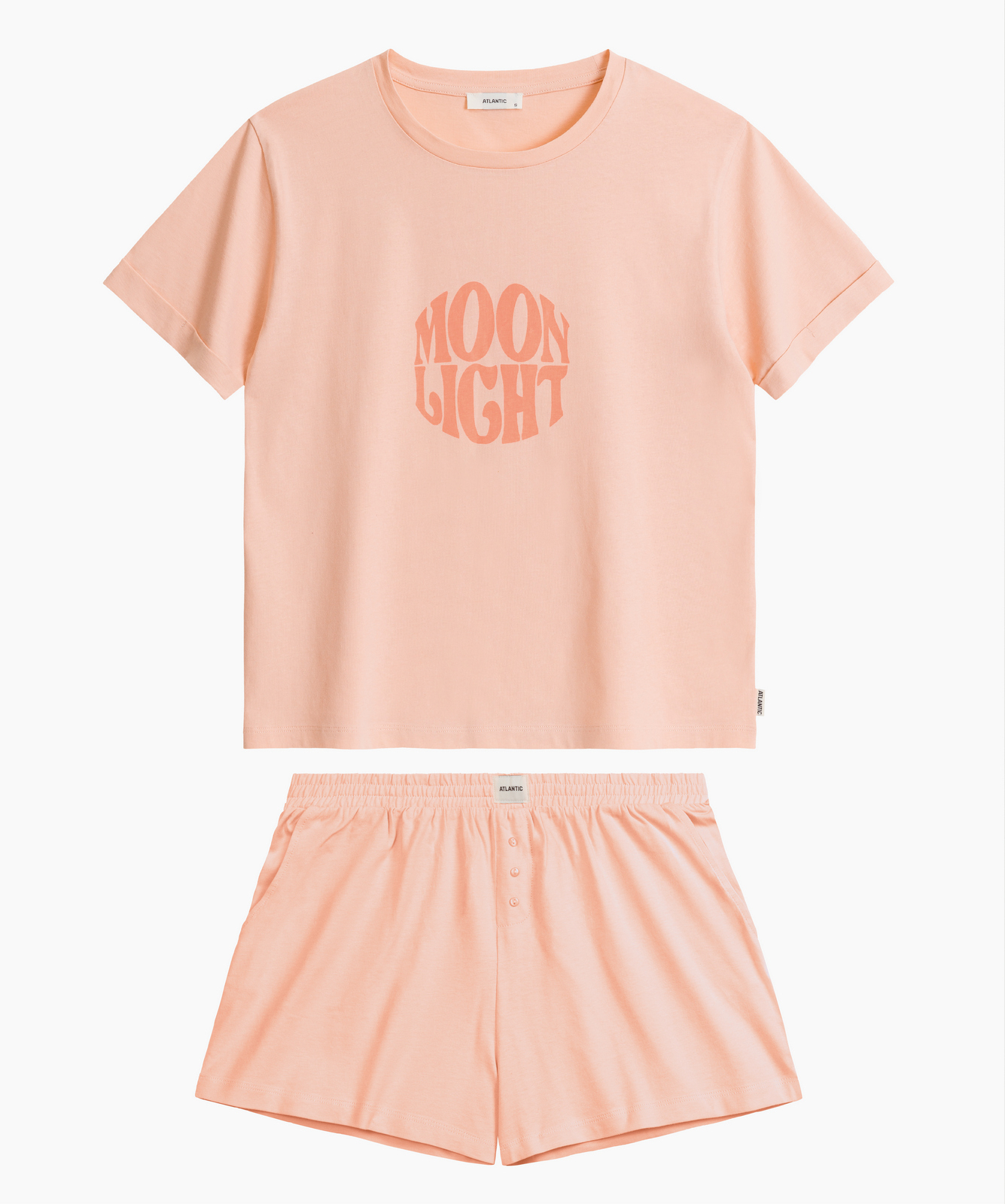Женская пижама Atlantic NLP-487 персикового цвета из коллекции Homewear - уютный комплект из футболки и шорт для комфортного отдыха. Изготовлена из 100% натурального хлопка, который мягко облегает тело и обеспечивает приятные ощущения при носке. Футболка с аккуратным круглым вырезом и короткими рукавами дополнена шортами с эластичной резинкой, декоративными пуговицами и двумя удобными карманами. Доступна в трех нежных оттенках: персиковом, бежевом и лаймовом. Размерный ряд от S до XL. Комплект в элегантной упаковке станет прекрасным подарком для близких на любой праздник или просто как знак внимания. Идеальный выбор для тех, кто ценит качество, комфорт и стиль в повседневной жизни.