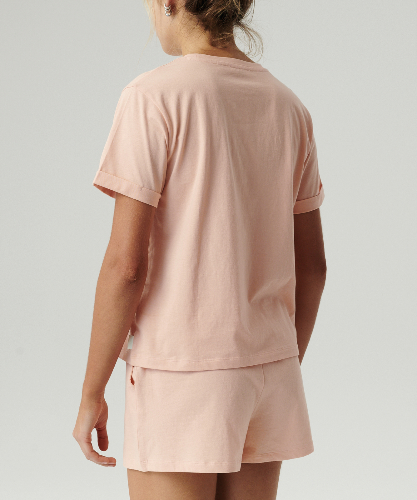 Пижама состоит из футболки с коротким рукавом и шорт. Изготовлена из хлопка высочайшего качества.