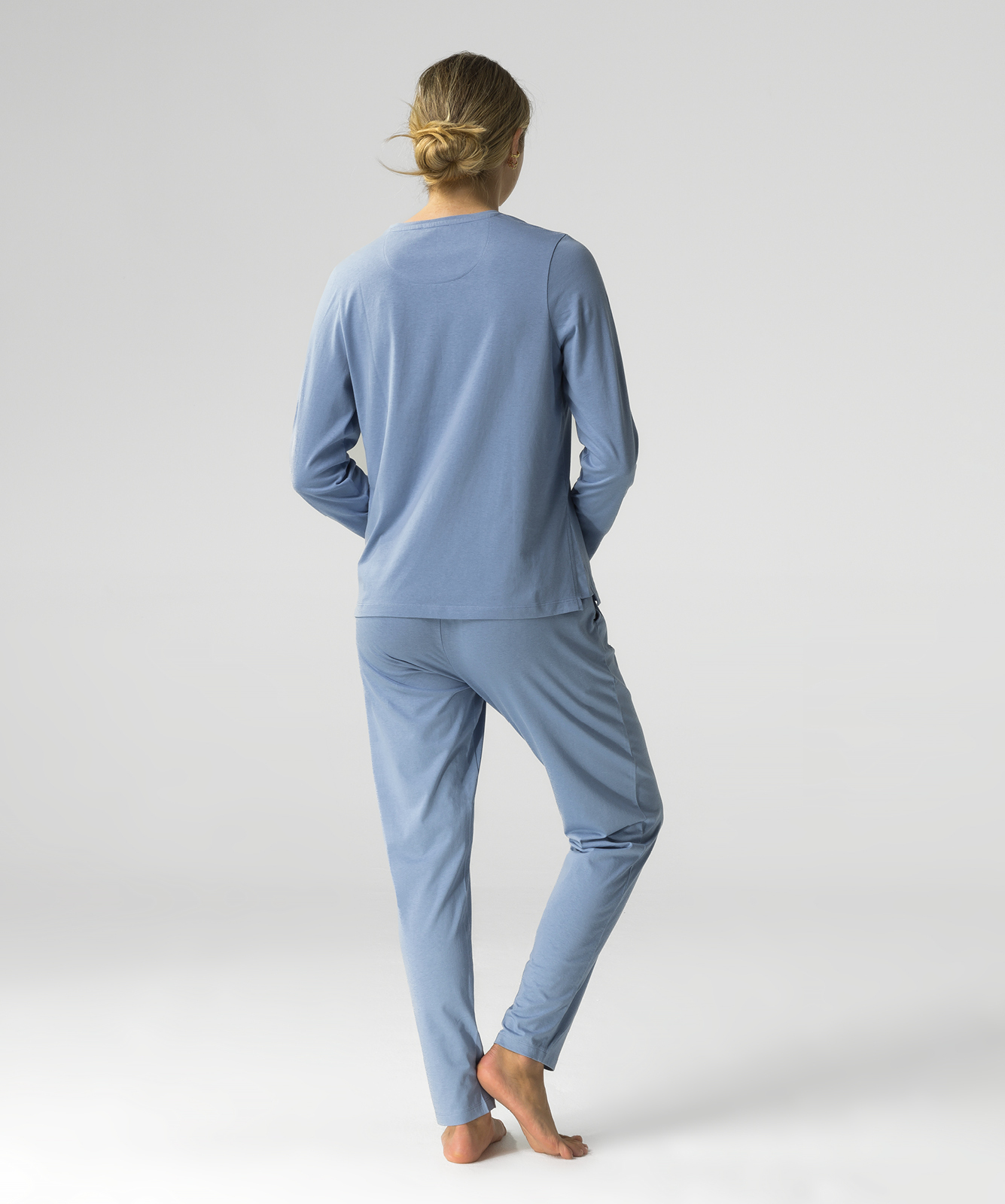 Пижама состоит из лонгслива с длинным рукавом и штанов.