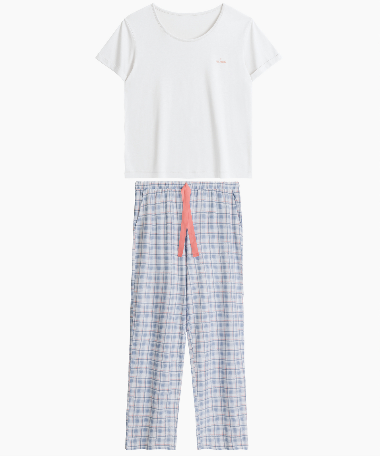 Доступные расцветки: белая с голубым и светло-серый меланж с розовым. В нашем интернет-магазине Вы можете приобрести пижаму Атлантик NLP-494 из наличия по самым выгодным ценам.