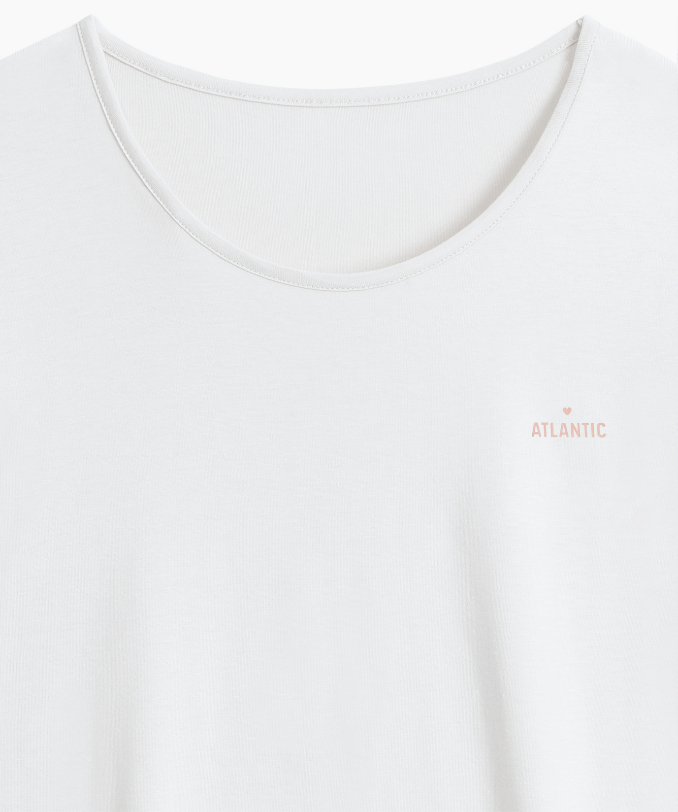 Женская пижама Atlantic белая c голубым цветом из коллекции домашней одежды. Коллекция Homewear польского бренда Atlantic - это женская одежда для домашнего отдыха и сна, которая представлена как готовыми пижамными комплектами. Женский пижамный комплект NLP-494 от польского бренда Atlantic превосходно подойдет абсолютно любой женщине. Фасон этой модели гарантирует идеальную посадку по фигуре и максимальный уровень комфорта. Стильная однотонная женская пижама, состоящая из футболки с коротким рукавом и штанов. Футболка имеет круглый вырез у горловины и небольшой брендированный логотип на груди. Штаны свободного кроя с эластичным поясом и завязками дополнены карманами. Пижама изготовлена из экологически чистого и современного премиального материала - модала - в сочетании с хлопком. Модал отличается легкостью, мягкостью и практичностью.