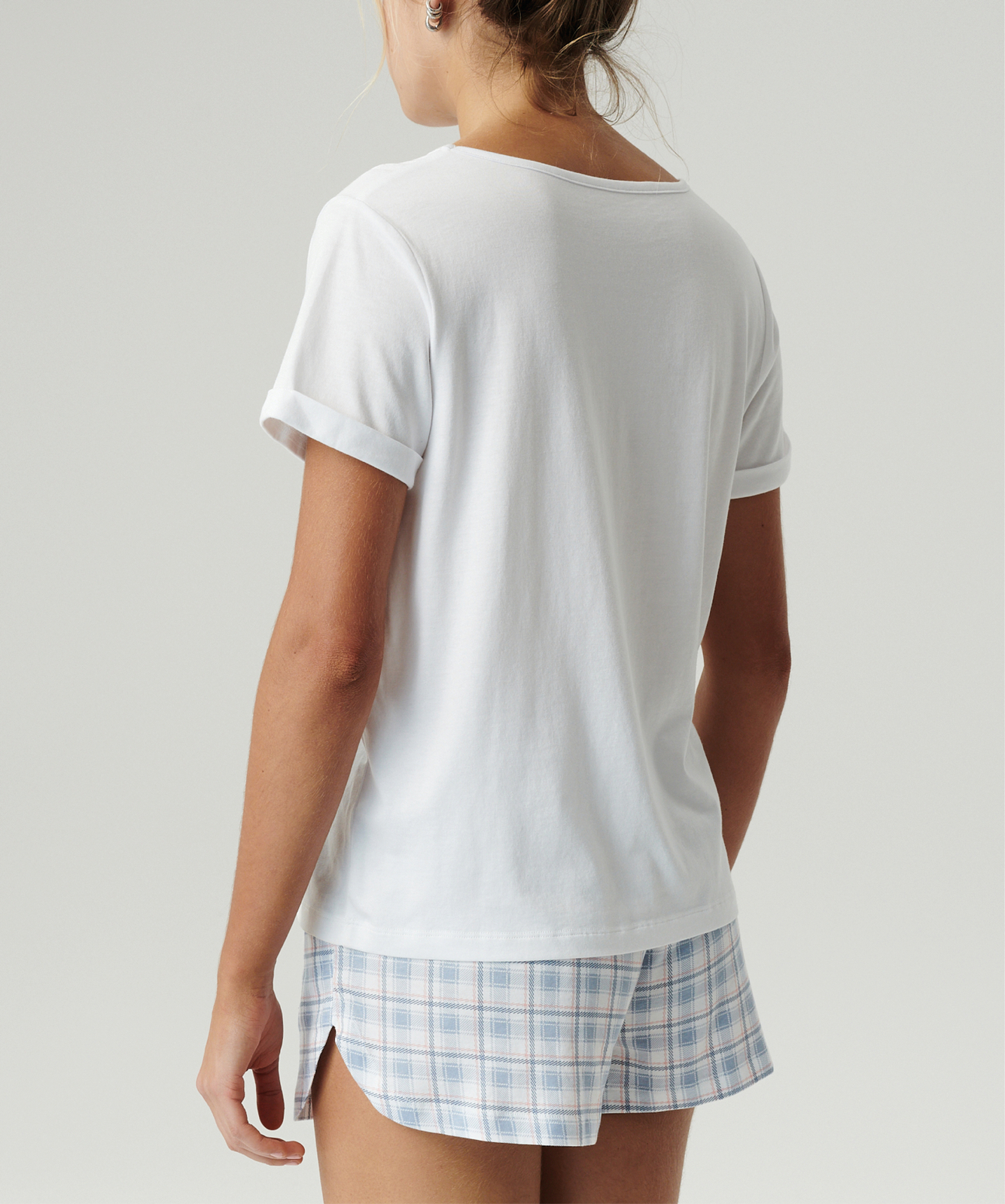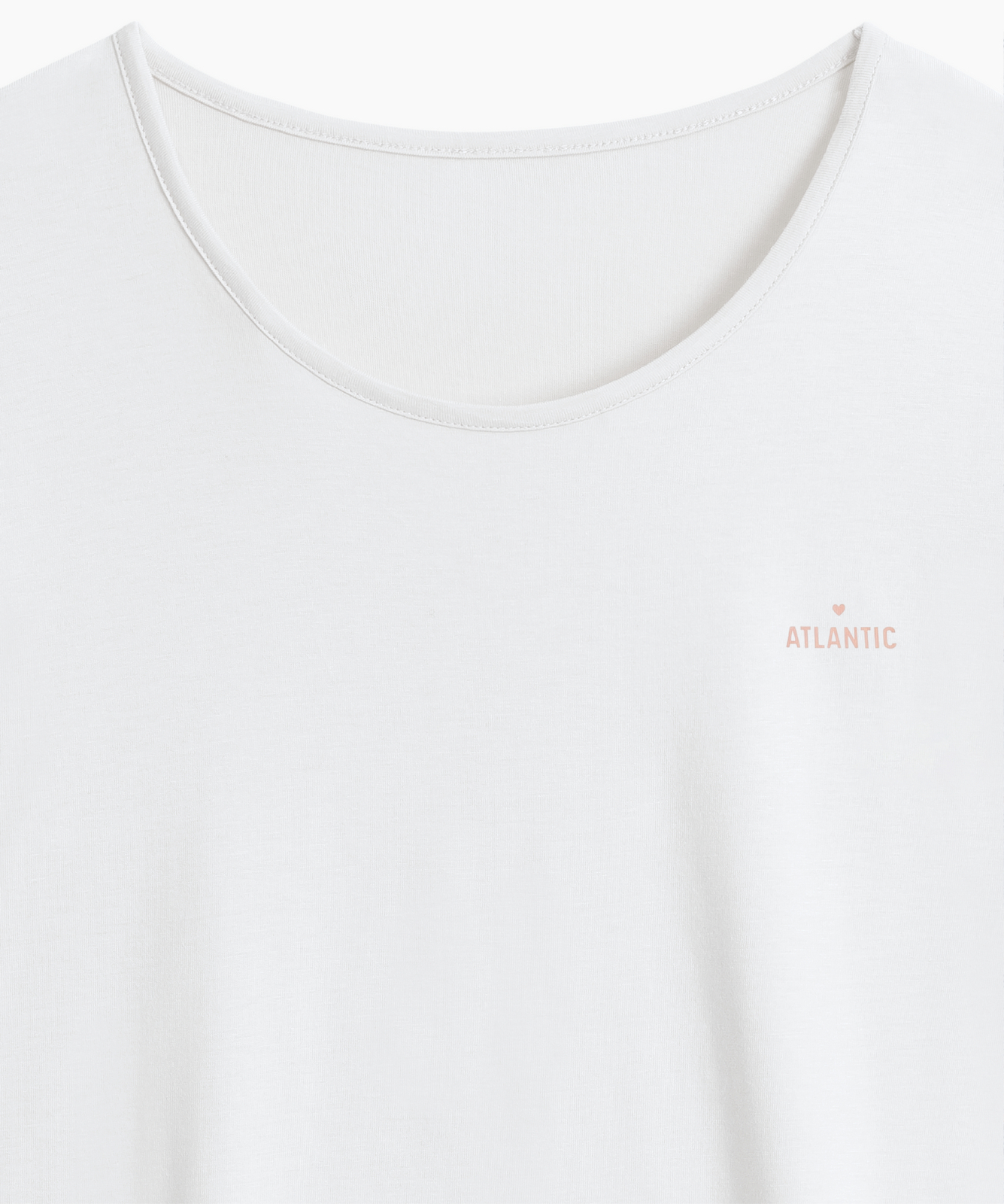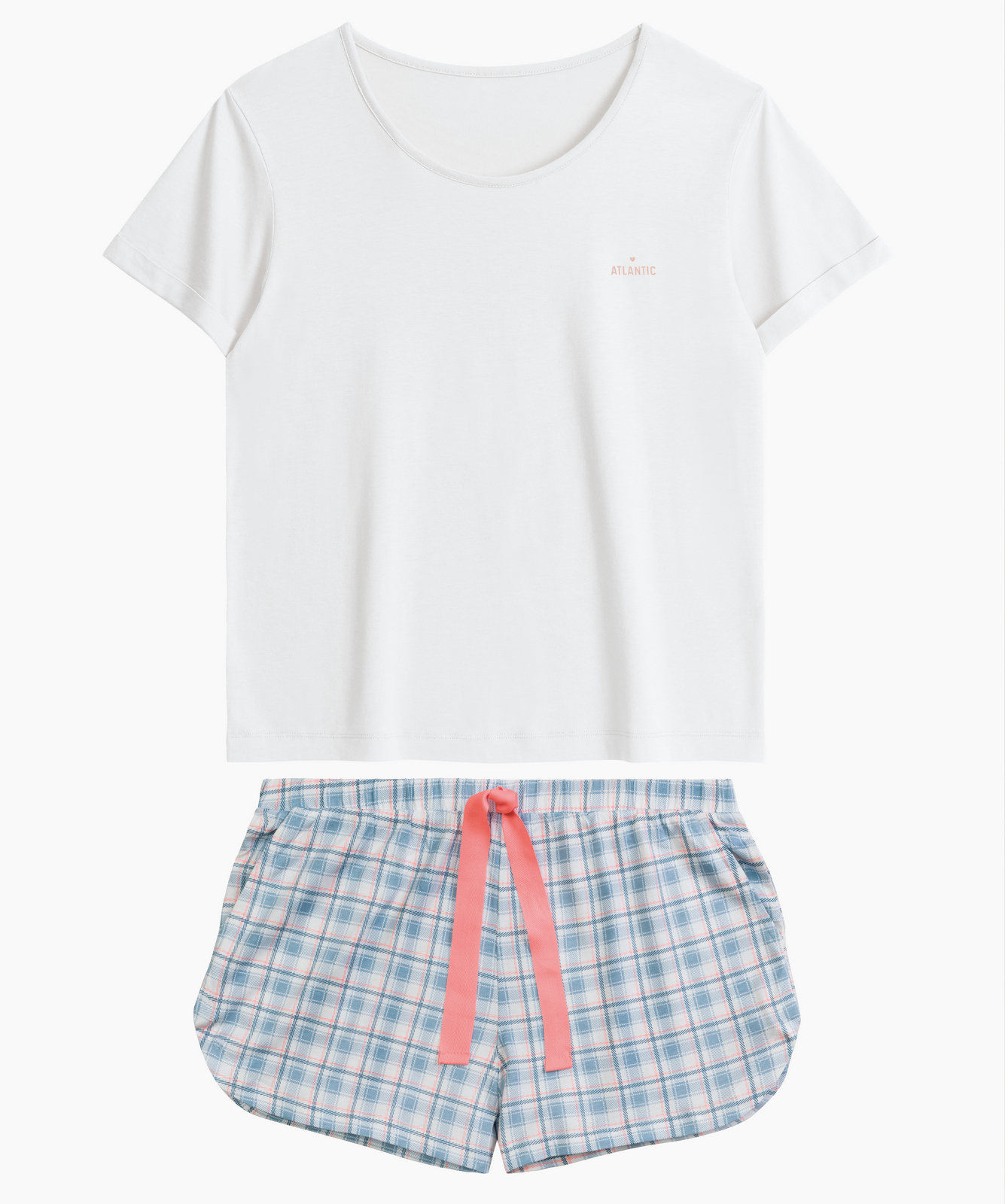 Женская пижама Atlantic в цвете белая с голубым из коллекции домашней одежды. Коллекция Homewear польского бренда Atlantic - это женская одежда для домашнего отдыха и сна, которая представлена как готовыми пижамными комплектами. Женский пижамный комплект NLP-497 от польского бренда Atlantic превосходно подойдет абсолютно любой женщине. Фасон этой модели гарантирует идеальную посадку по фигуре и максимальный уровень комфорта. Стильная женская пижама, состоящая из футболки с коротким рукавом и шорт. Футболка имеет круглый вырез у горловины и небольшой брендированный логотип на груди. Шорты с эластичным поясом и завязками дополнены карманами. Пижама изготовлена из экологически чистого и современного премиального материала - модала - в сочетании с хлопком. Модал отличается легкостью, мягкостью и практичностью.