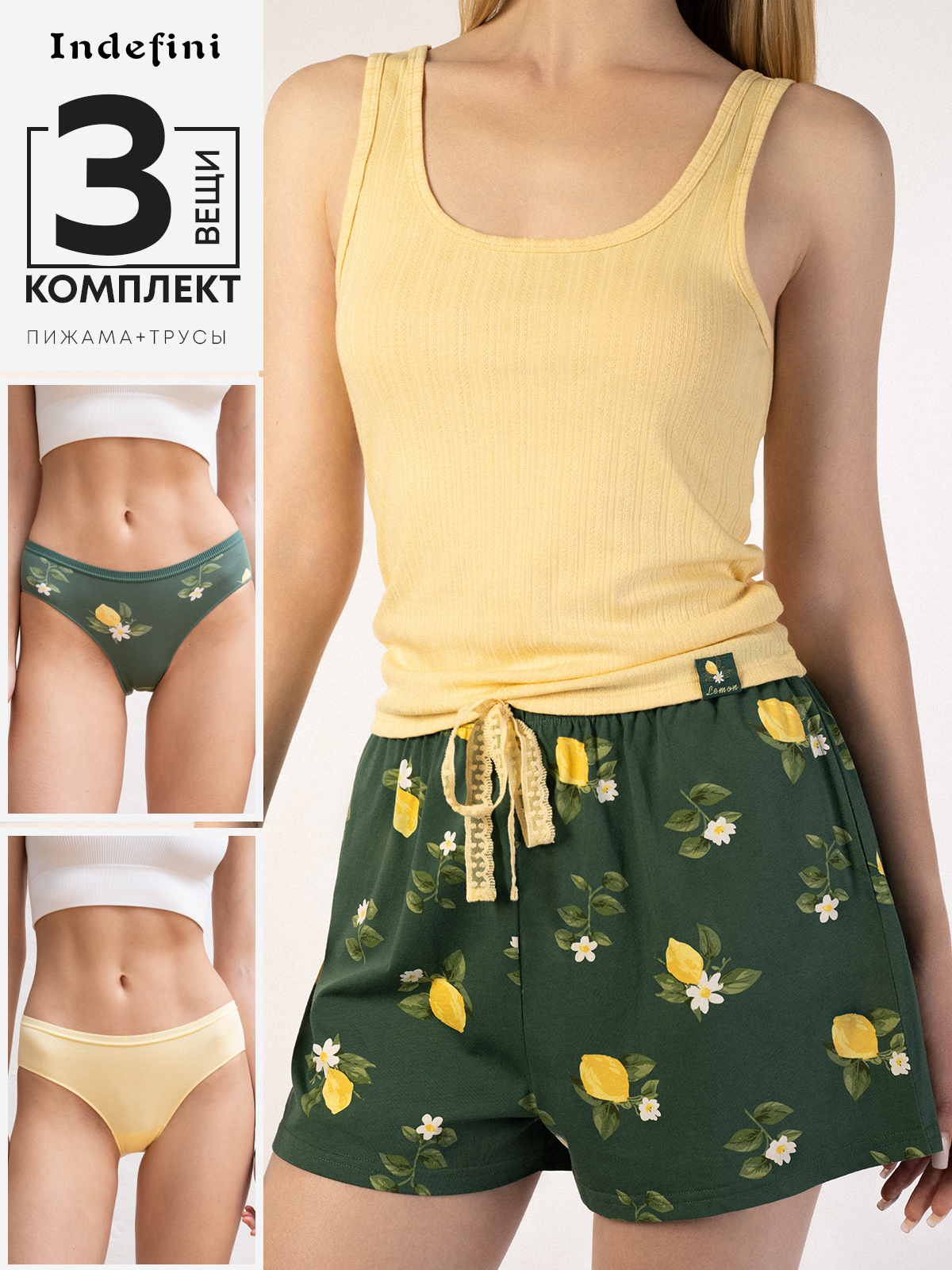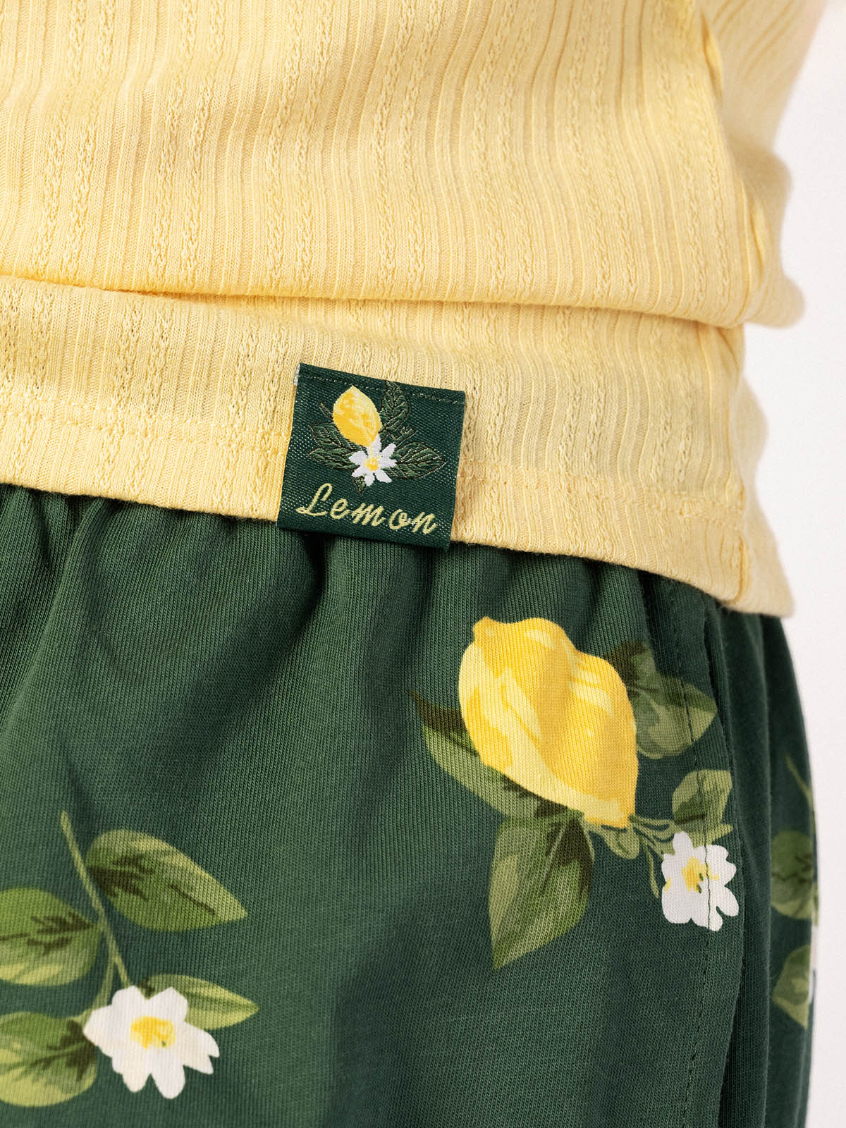 Легкая и стильная пижама для комфортного сна и отдыха. Сочетание дышащих материалов и яркого летнего дизайна с лимонами создает настроение свежести и уюта. Идеально подходит для теплых летних ночей.