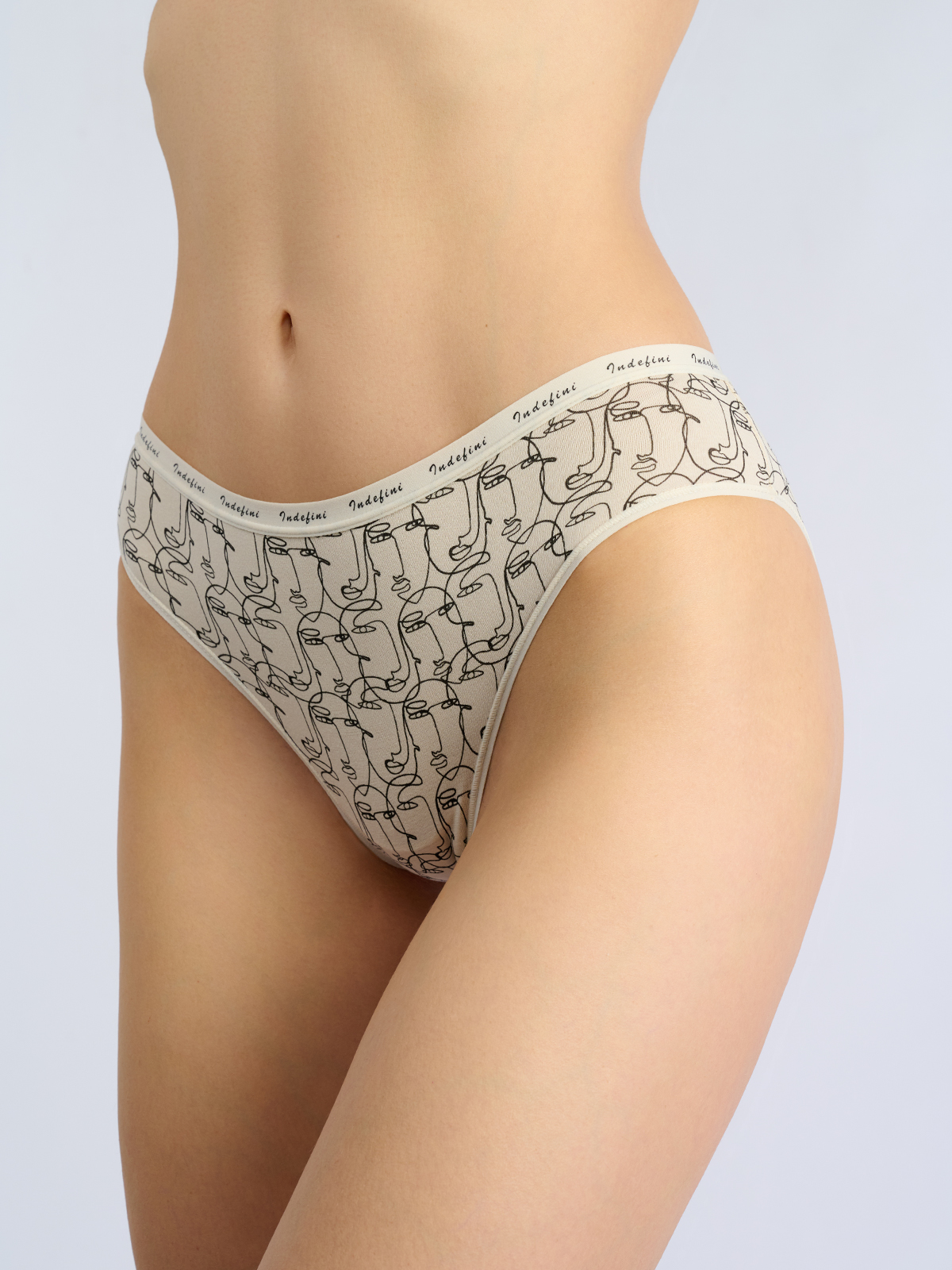 ✔ Пояс: Тонкая эластичная резинка с повторяющимся логотипом Indefini — не только функционально фиксирует трусы, но и подчеркивает брендовую принадлежность.