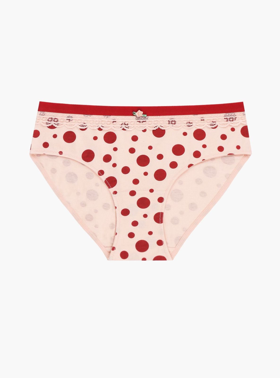 Женские трусы-слипы (Арт. 2305LUF) от торговой марки Indefini. Женские трусы-слипы из бамбука и хлопка с красным горошком и красной резинкой с кружевом и цветочком спереди — это прекрасный выбор для чувственных и стильных дам.
