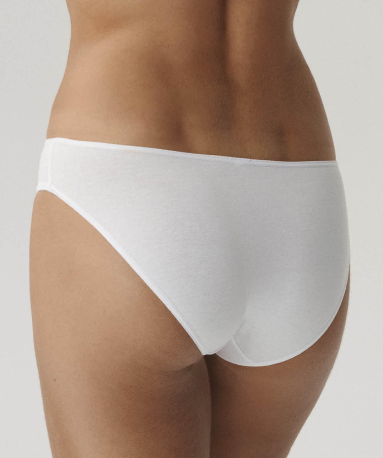 Модель со средней линией талии и универсальной шириной по бокам, закрыта сзади. Благодаря высоко вырезанной линии бедра, визуально удлиняет ноги. Идеально подходит для повседневной носки.