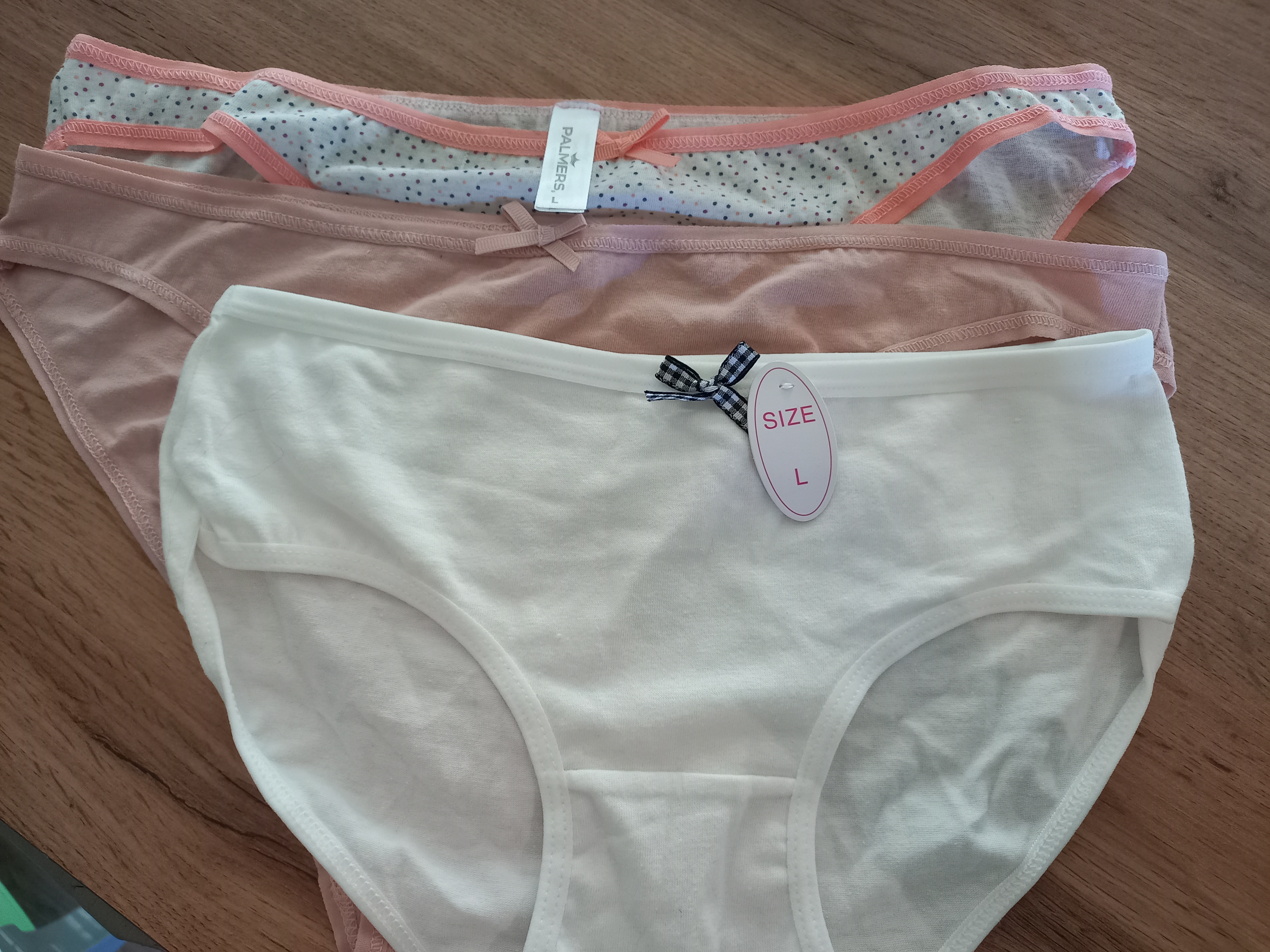 Трусы пришли в обычном полиэтиленовом пакете. Двое трусов одной марки, третьи другой. Также отличаются по размеру. Везде стоит L, но по факту одни намного меньше двух других. Качество ткани неплохое!
