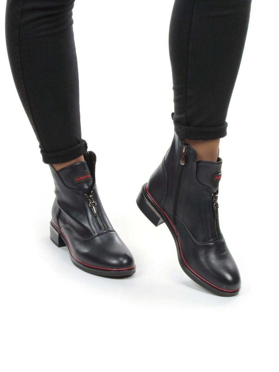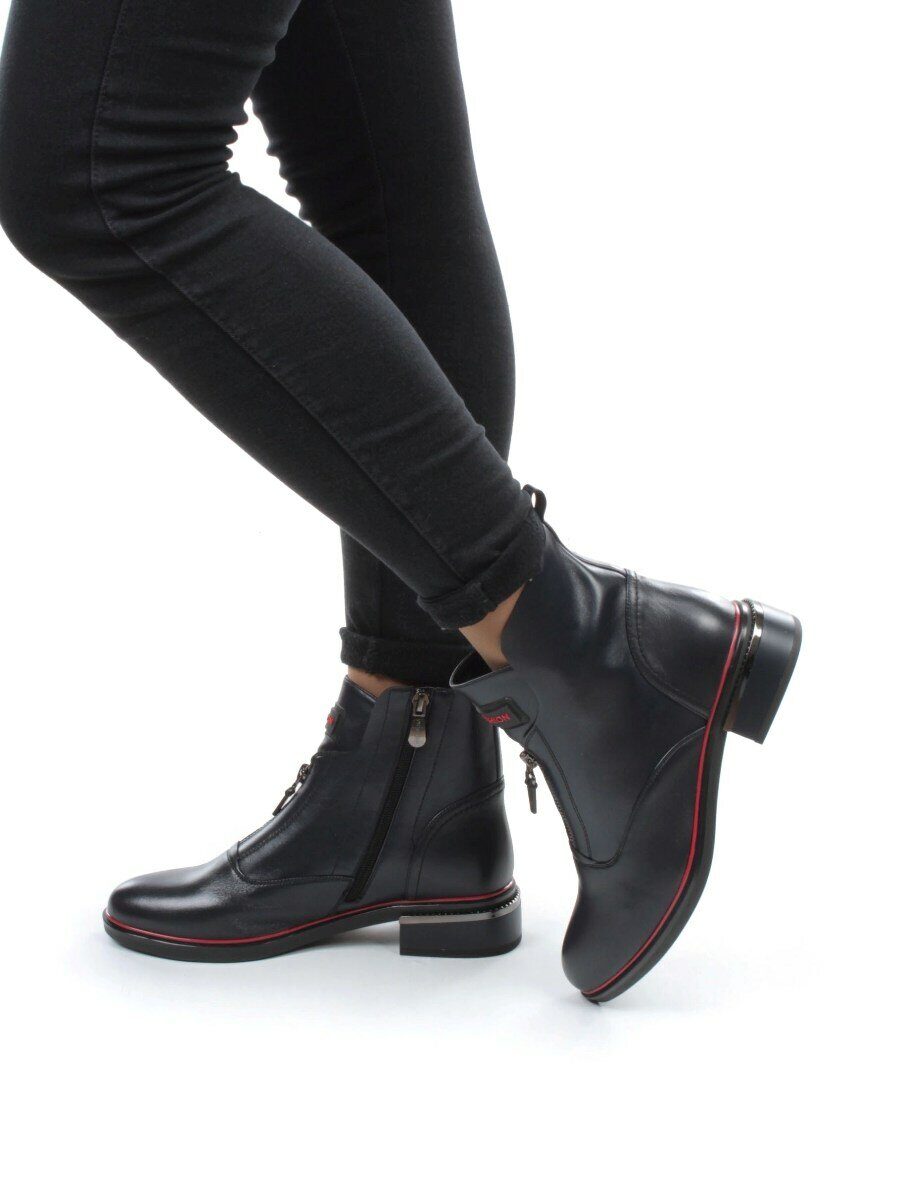 Черный Ботинки демисезонные женские (натуральная кожа, байка)