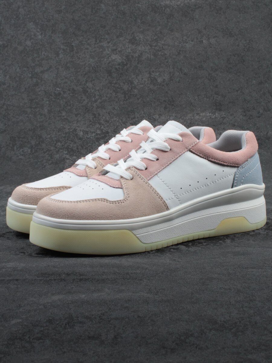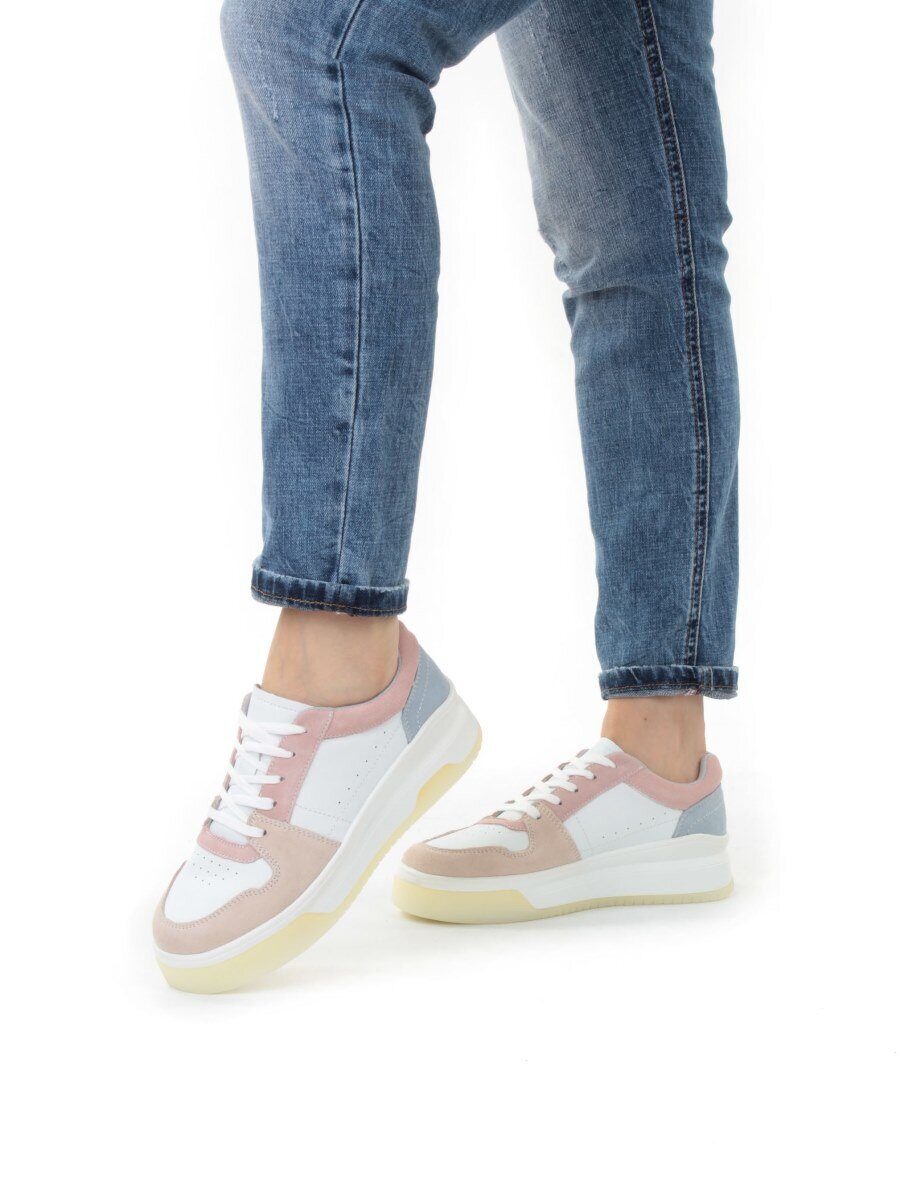 03-YG453-1 WHITE/PINK/BEIGE/LT. BLUE Кроссовки женские (натуральная кожа)