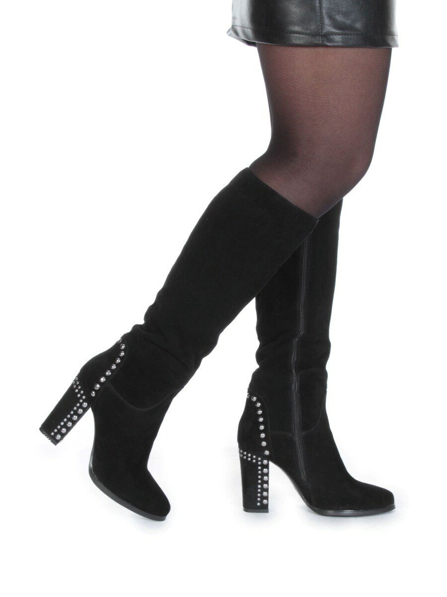 Черный (витрина) Сапоги женские (натуральная замша, натуральный мех (евромех))