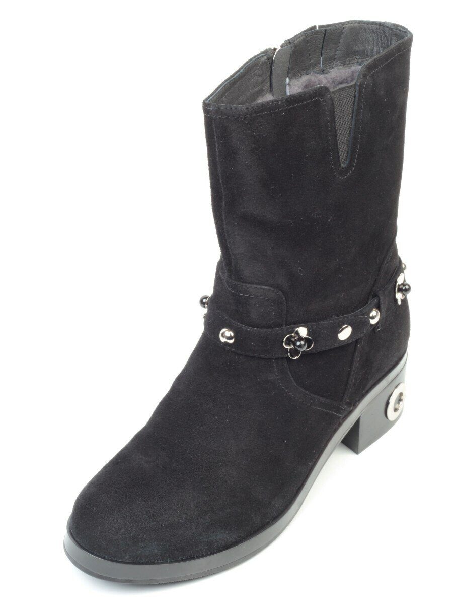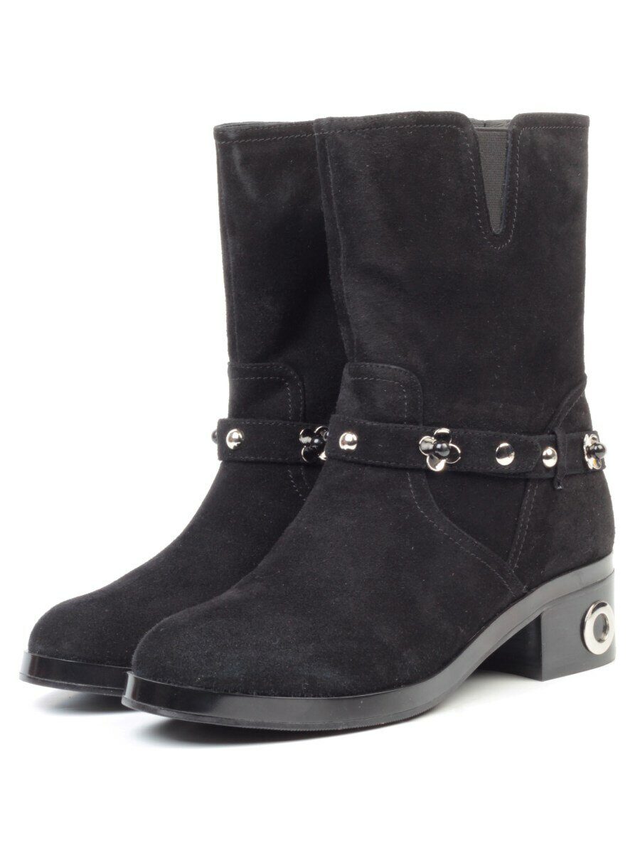 Черный Ботинки зимние женские (натуральная замша, натуральный мех)