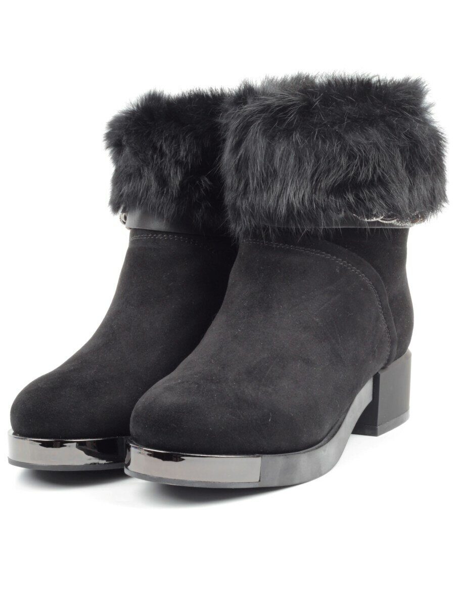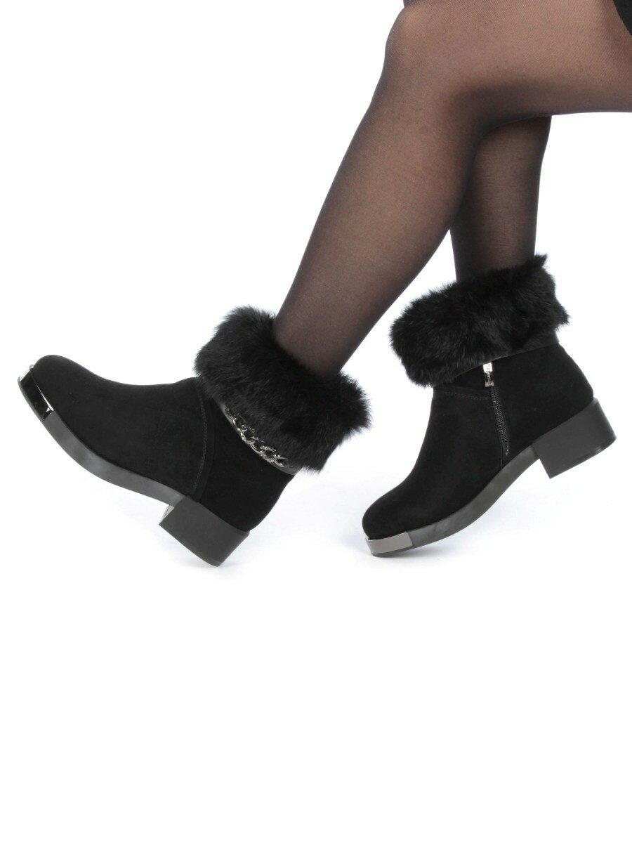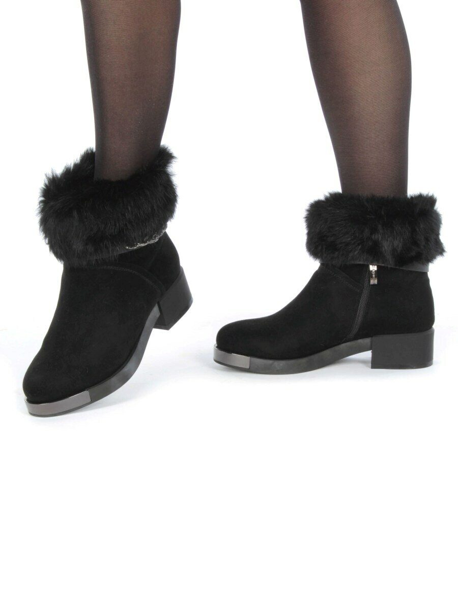 Черный (витрина) Ботинки зимние женские (натуральная замша, натуральный мех)