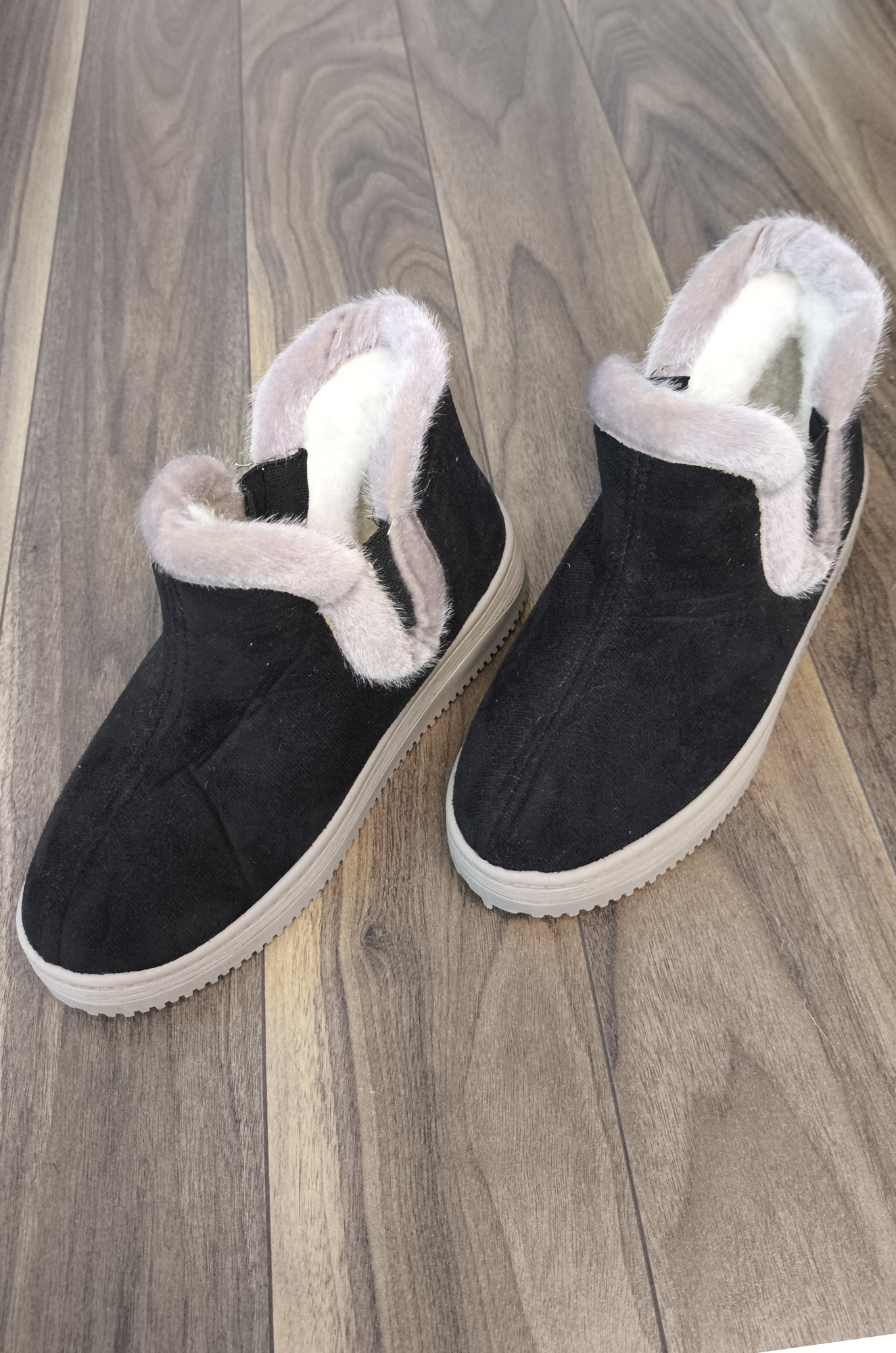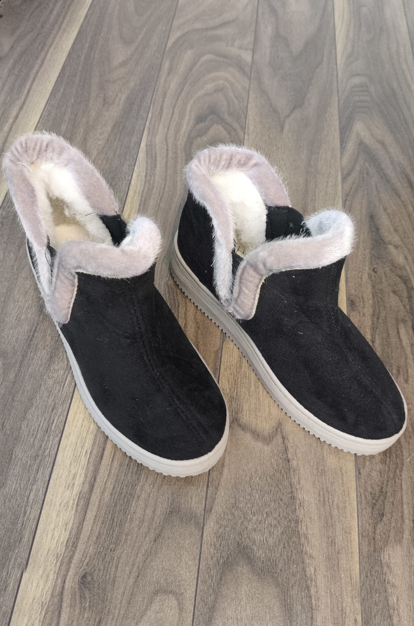Женские ботинки под замшу с утеплителем из искусственного меха. Плотная резинка по бокам гарантирует удобство при надевании и идеальную посадку по ноге. Отделка по краю мехом под норку. Высокая очень мягкая резиновая подошва. Производство Россия.