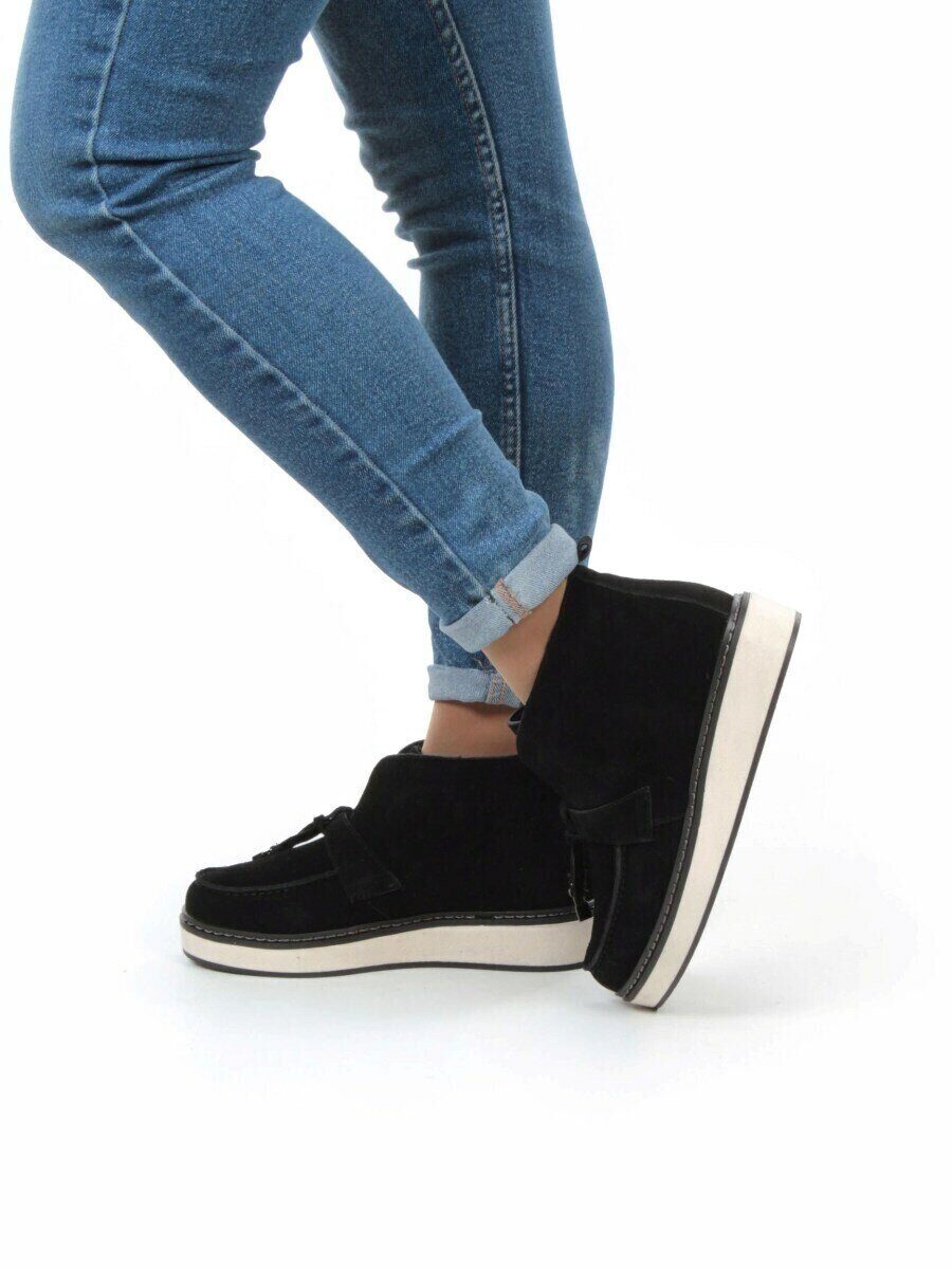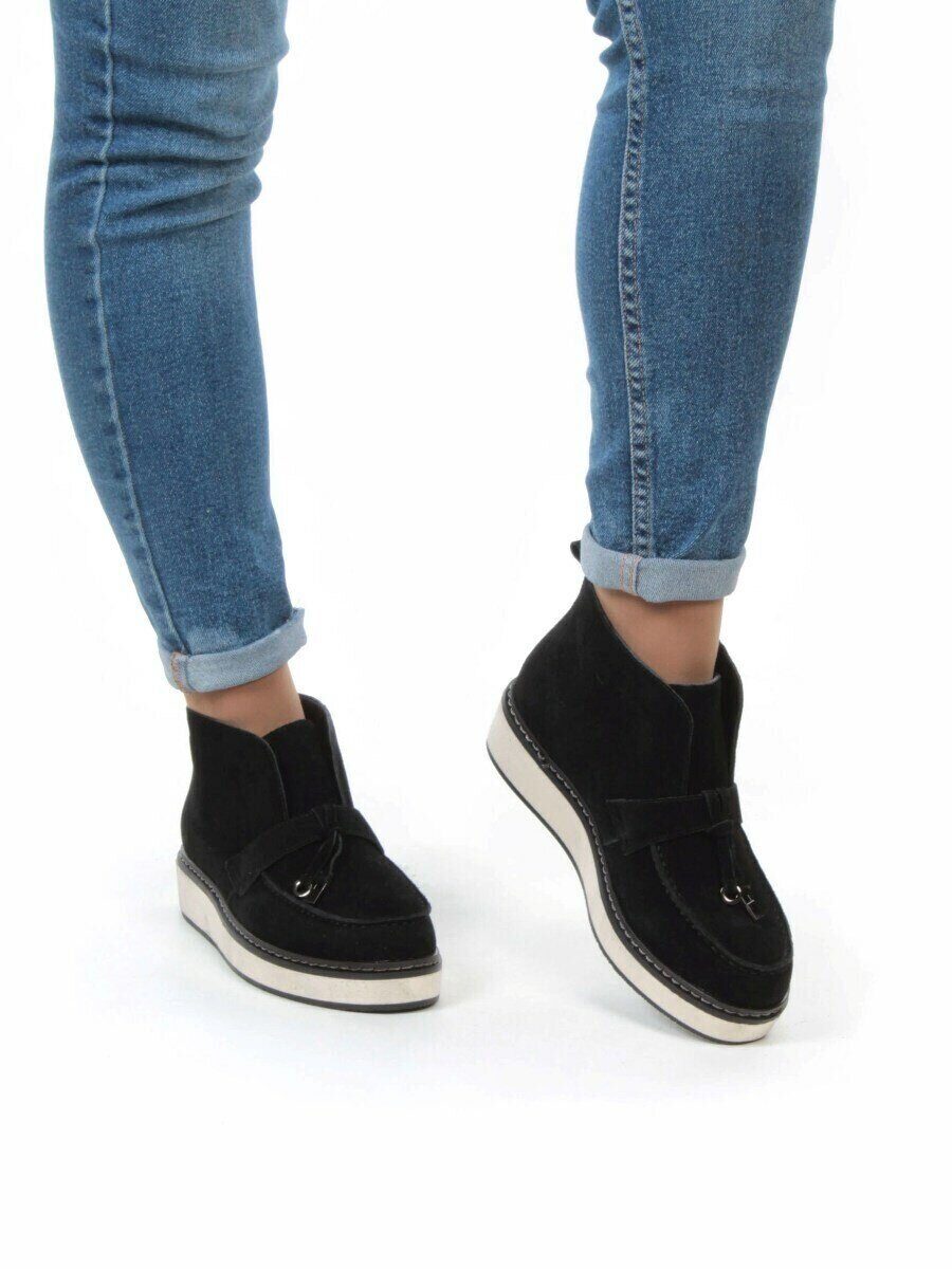 Черный Ботинки женские демисезонные (натуральная замша, байка)