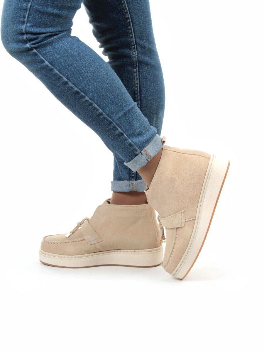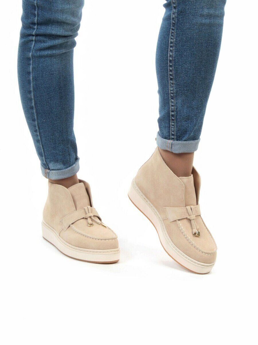 Бежевый Ботинки женские демисезонные (натуральная замша, байка)