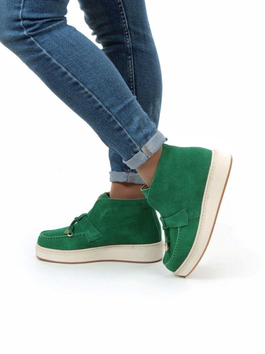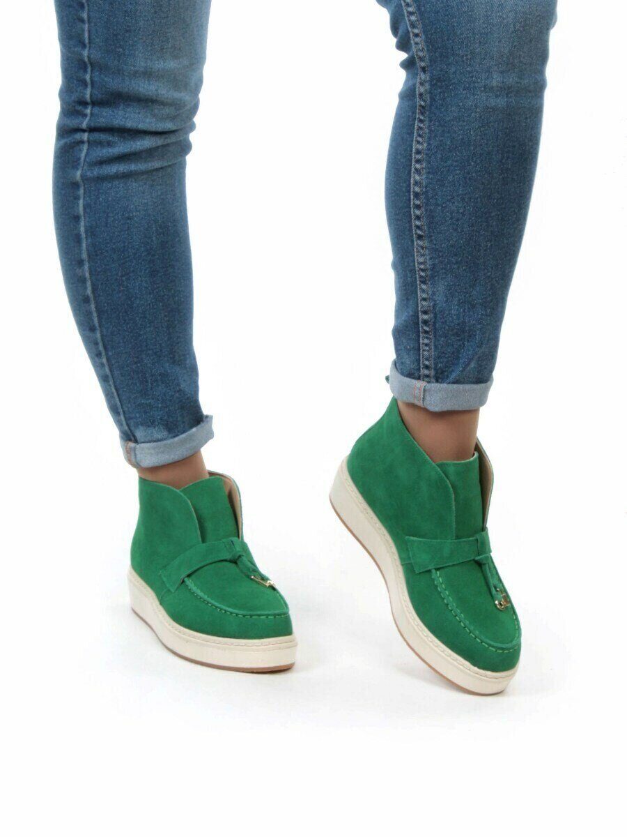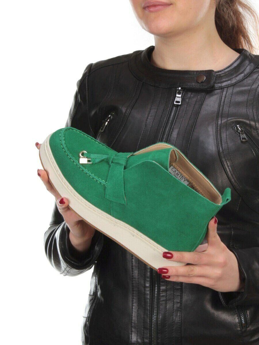 Зеленый Ботинки женские демисезонные (натуральная замша, байка)