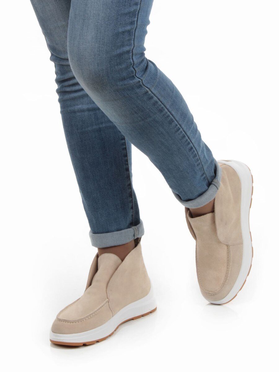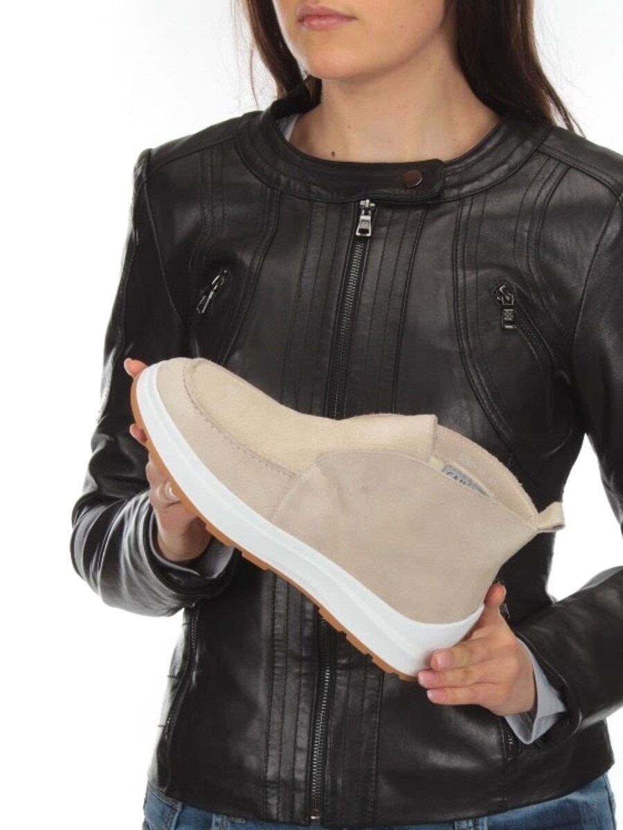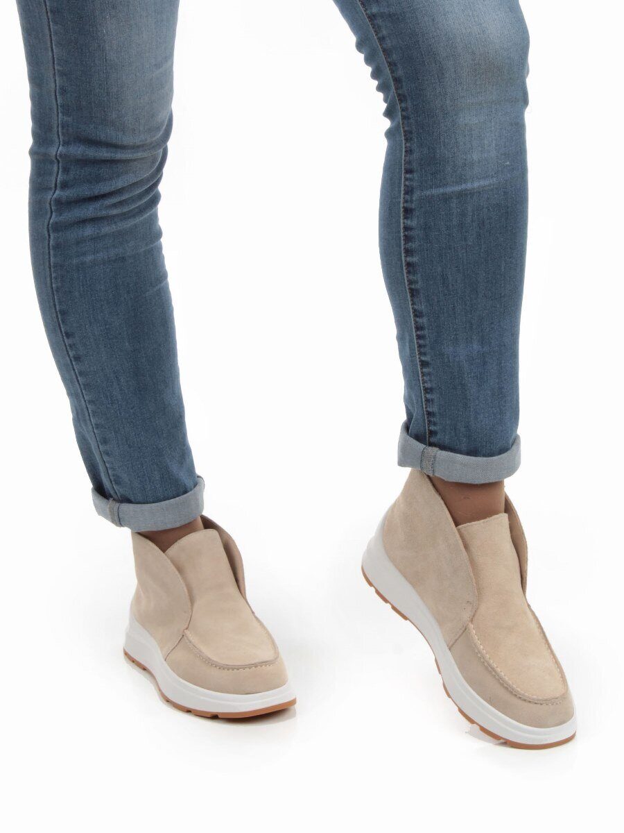Светло-бежевый Ботинки демисезонные женские (натуральная замша, байка)