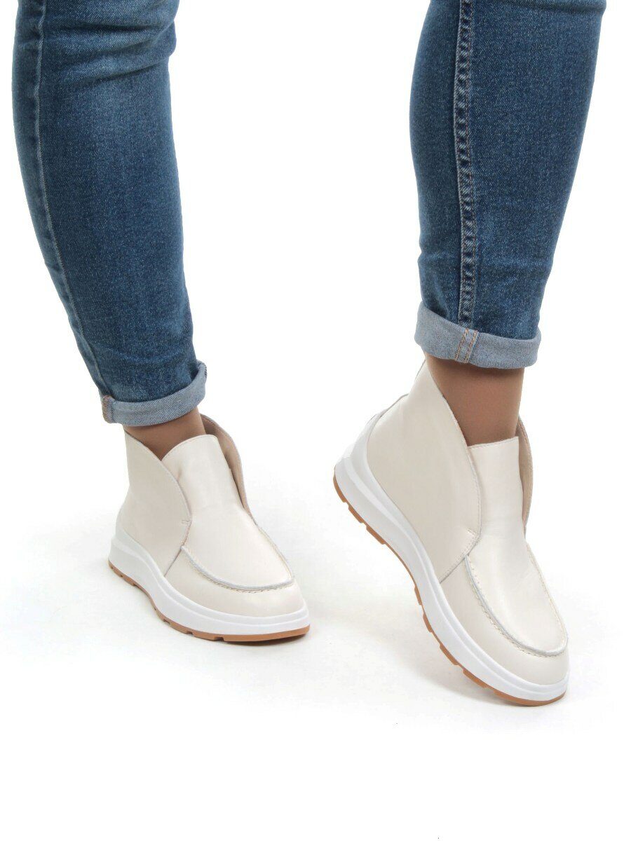Белый Ботинки демисезонные женские (натуральная кожа, байка)