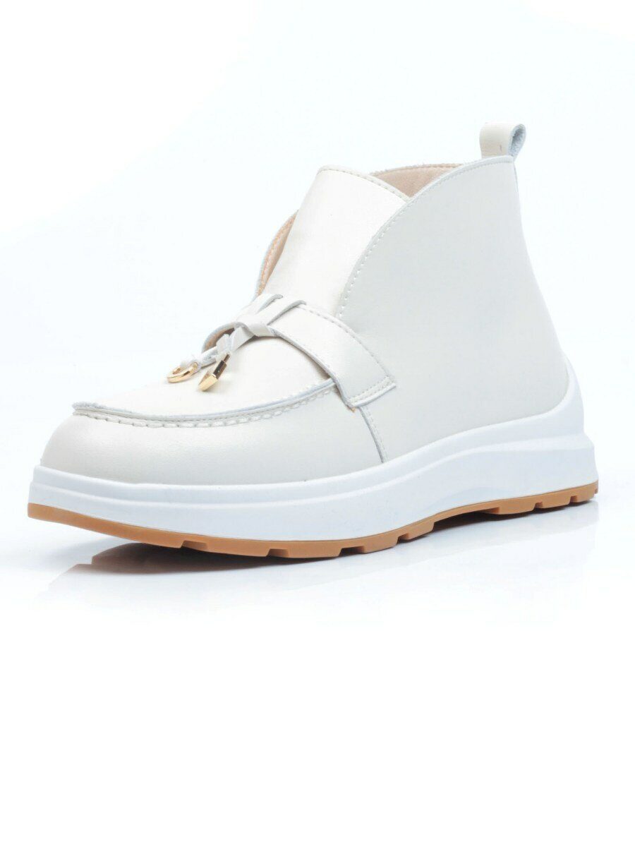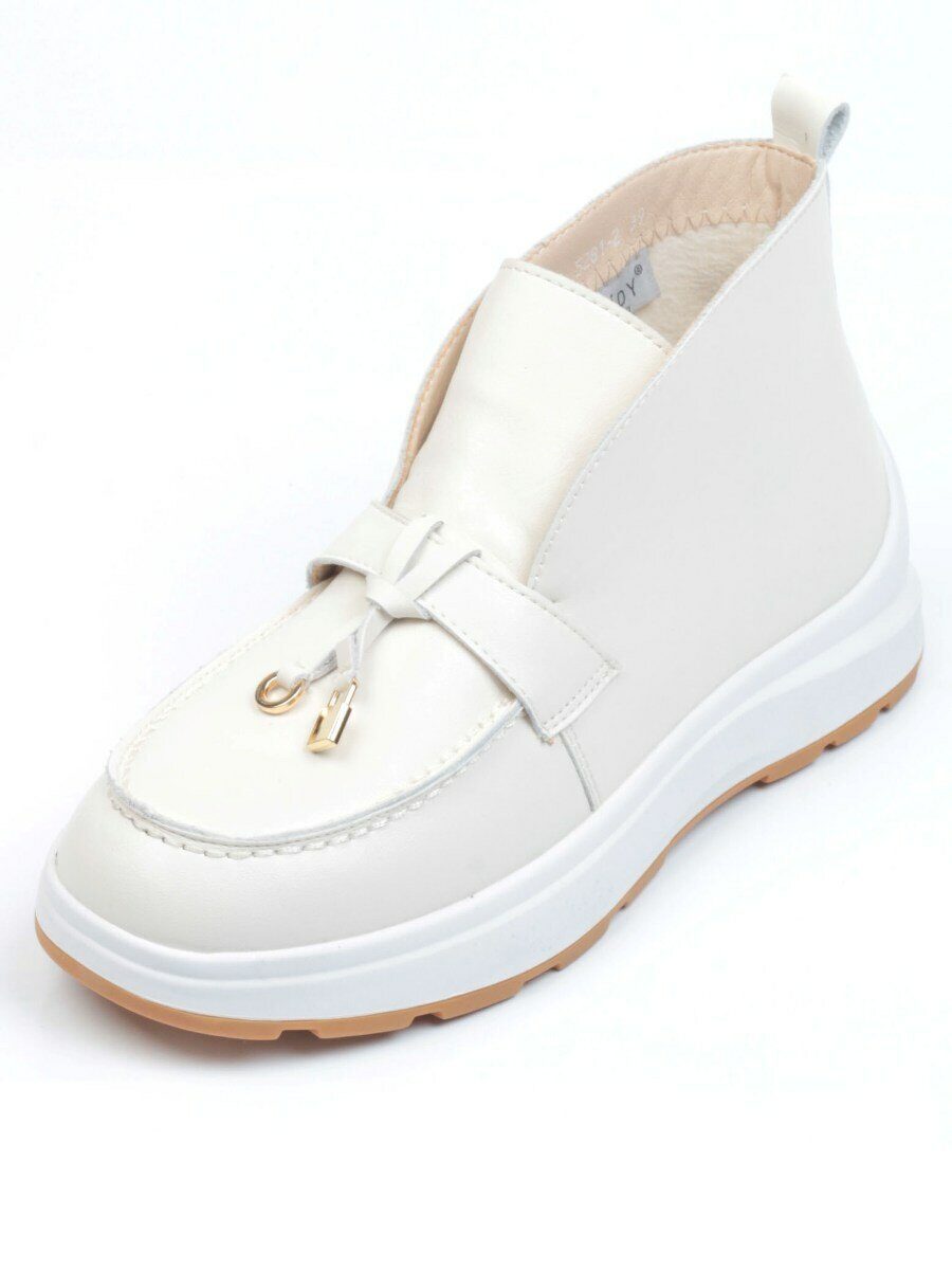 Белый Ботинки демисезонные женские (натуральная кожа, байка)