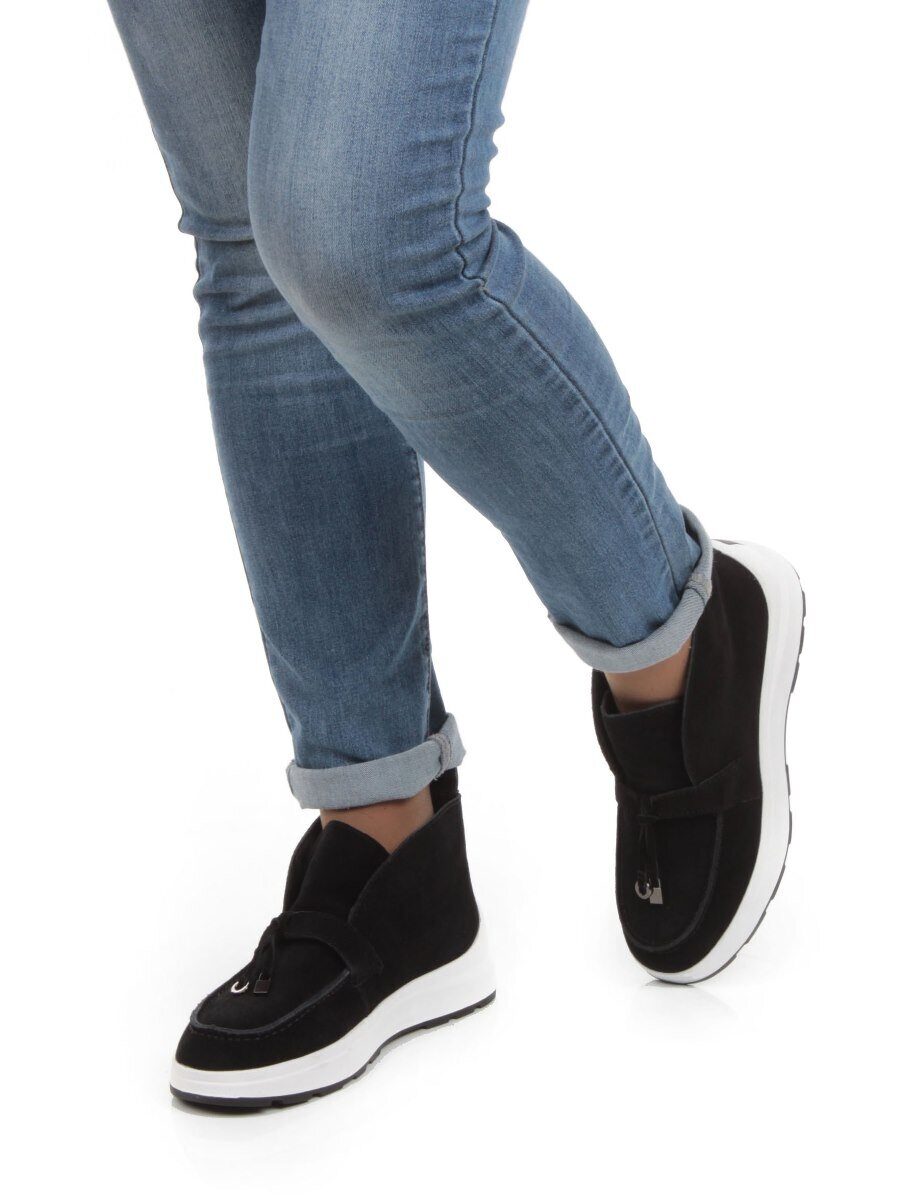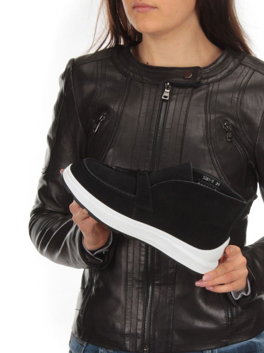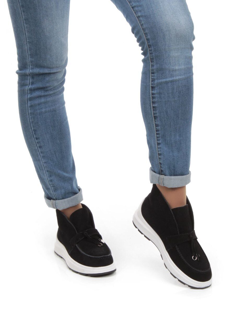 Черный Ботинки демисезонные женские (натуральная замша, байка)
