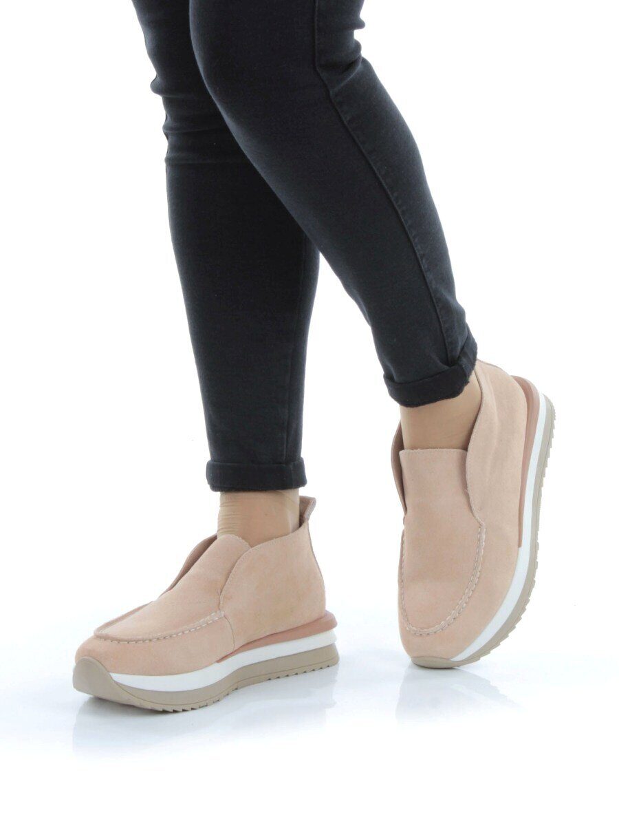 Бежевый Ботинки демисезонные женские (натуральная замша, байка)