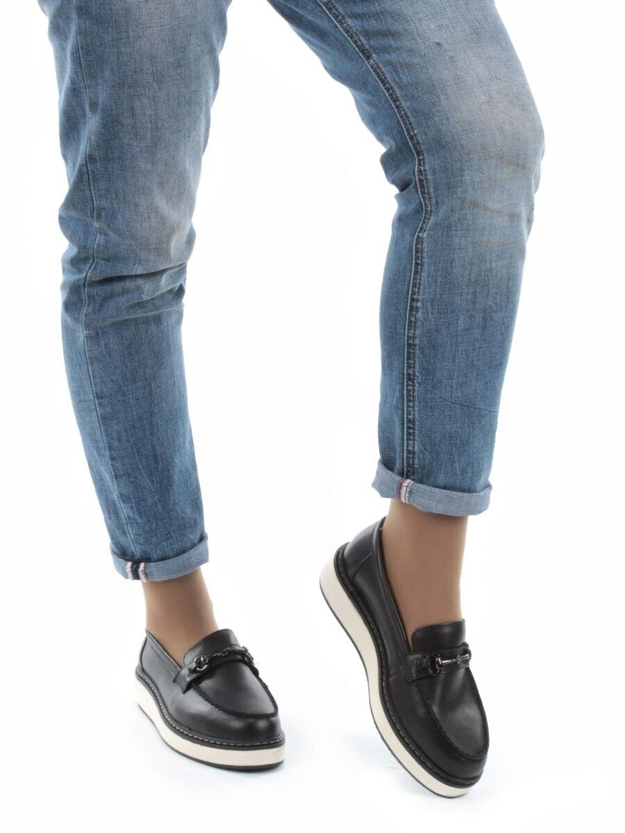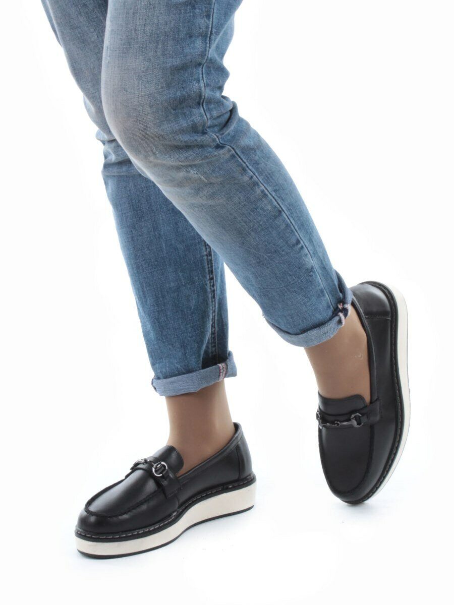 Черный Туфли лоферы женские (натуральная кожа)