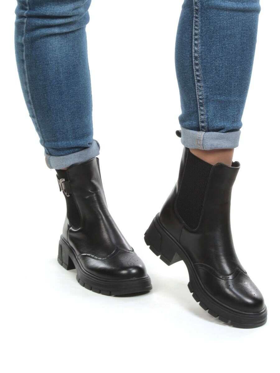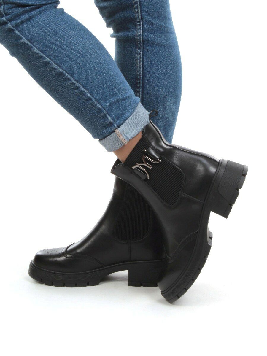 Черный Ботинки демисезонные женские (натуральная кожа, байка)