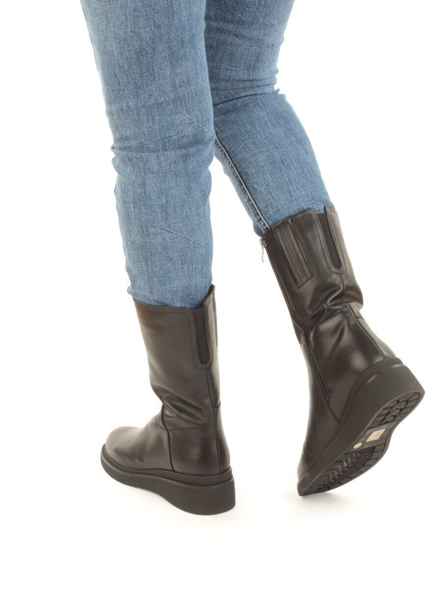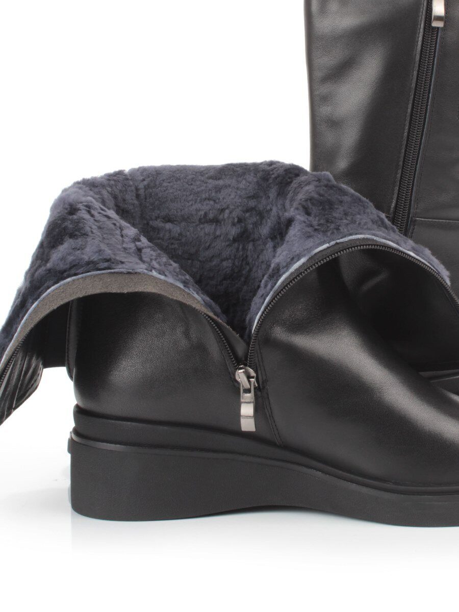 Черный Полусапоги зимние женские из натуральной кожи с натуральным мехом