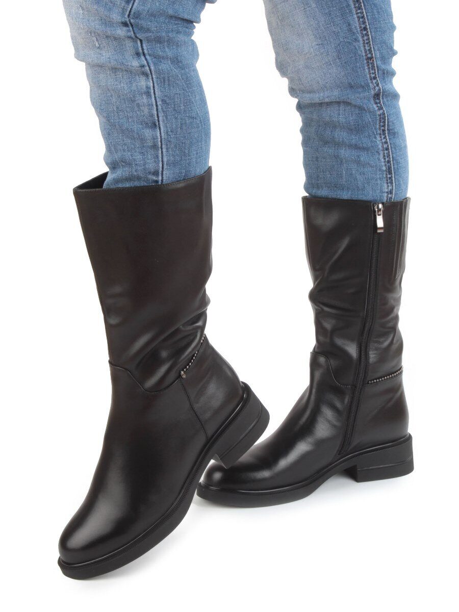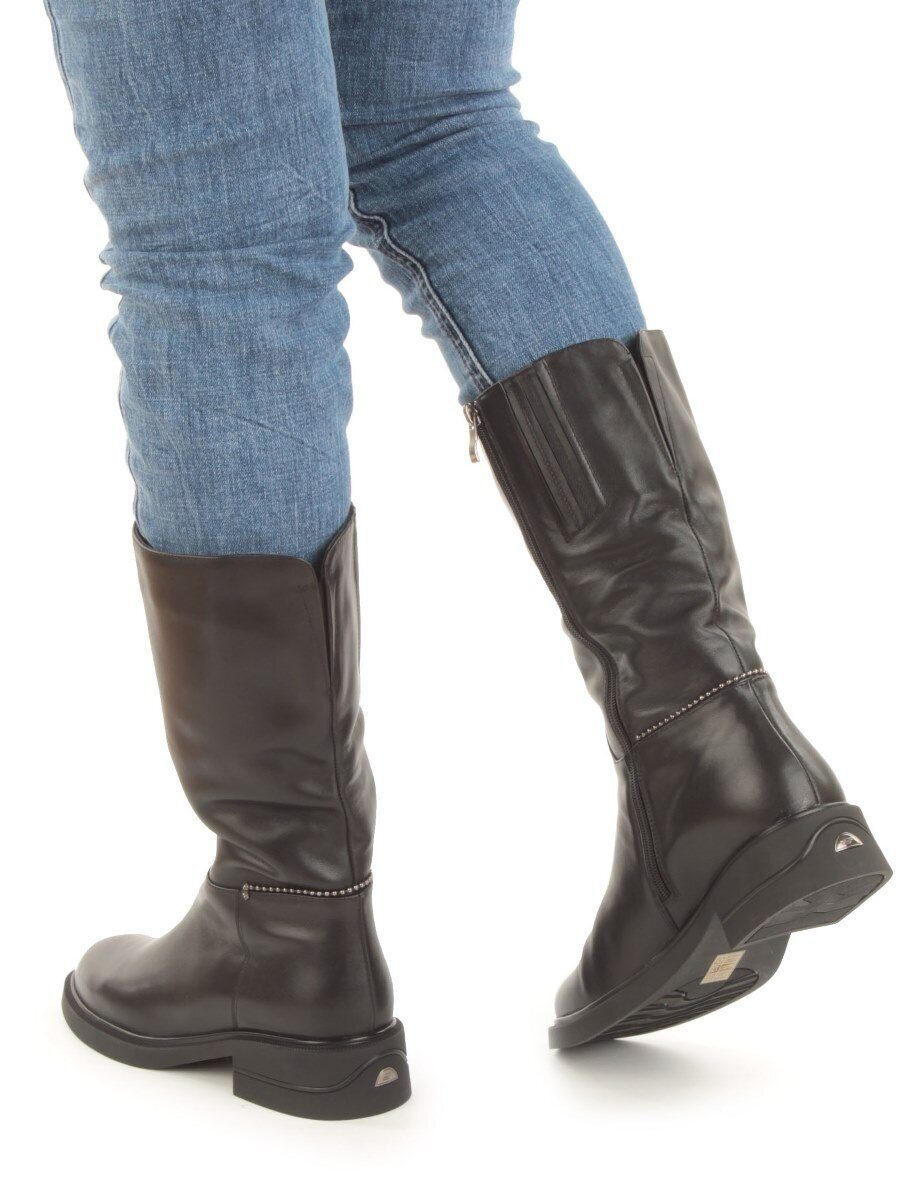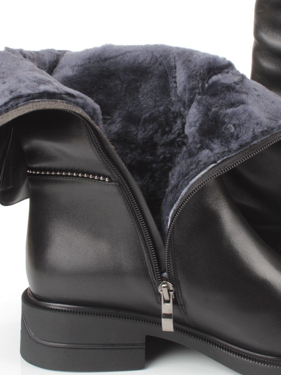 Черный Сапоги зимние женские из натуральной кожи с натуральным мехом