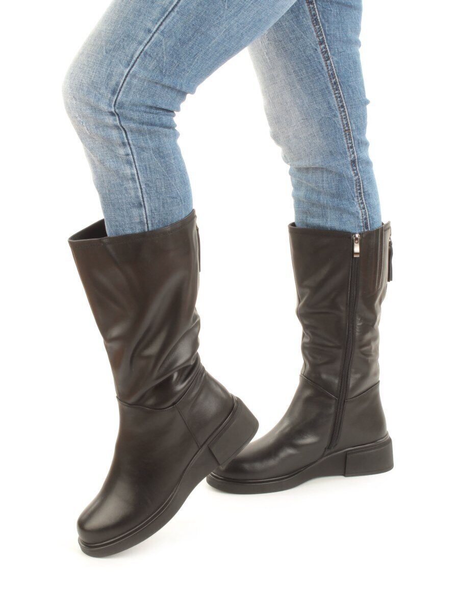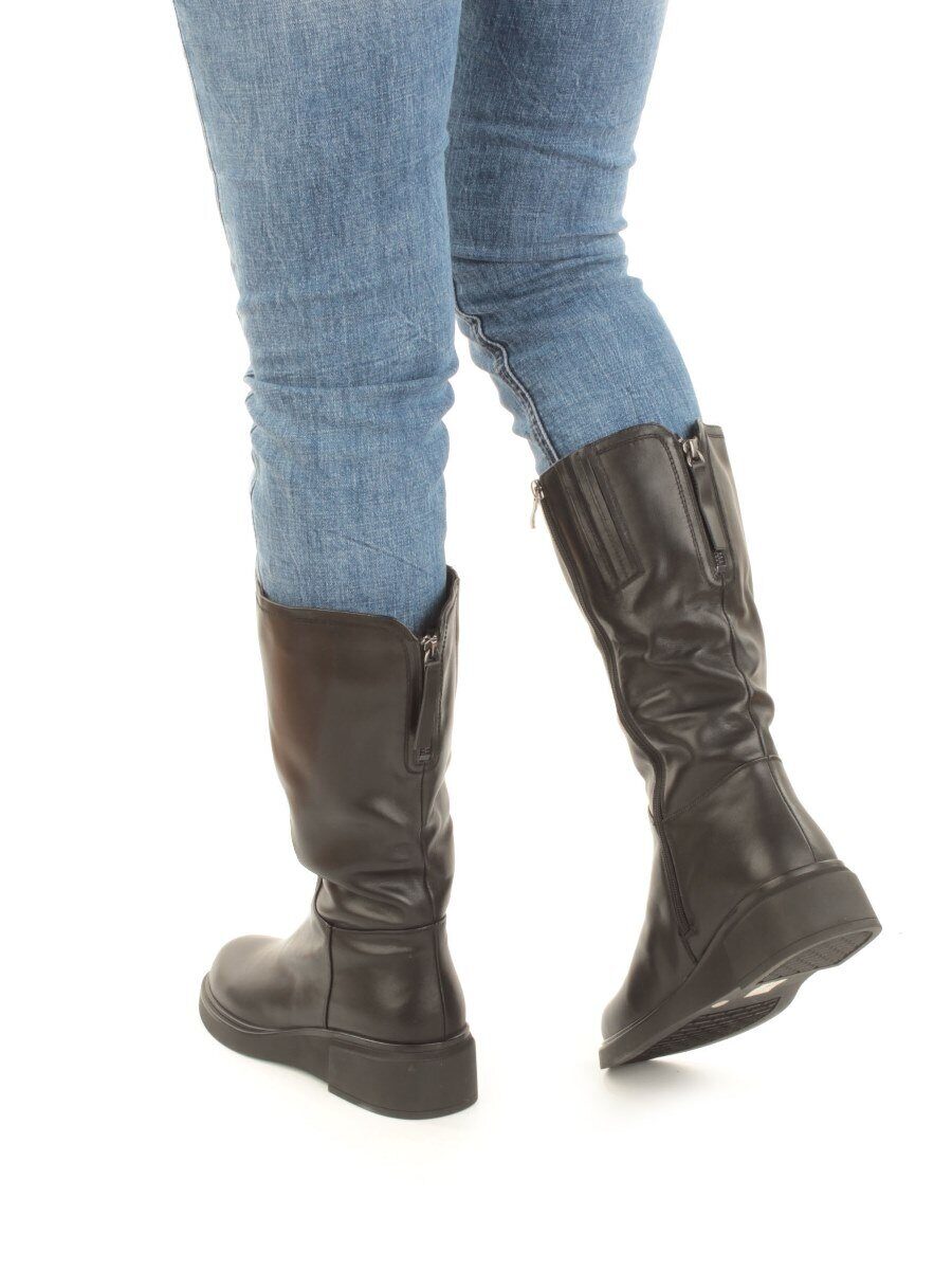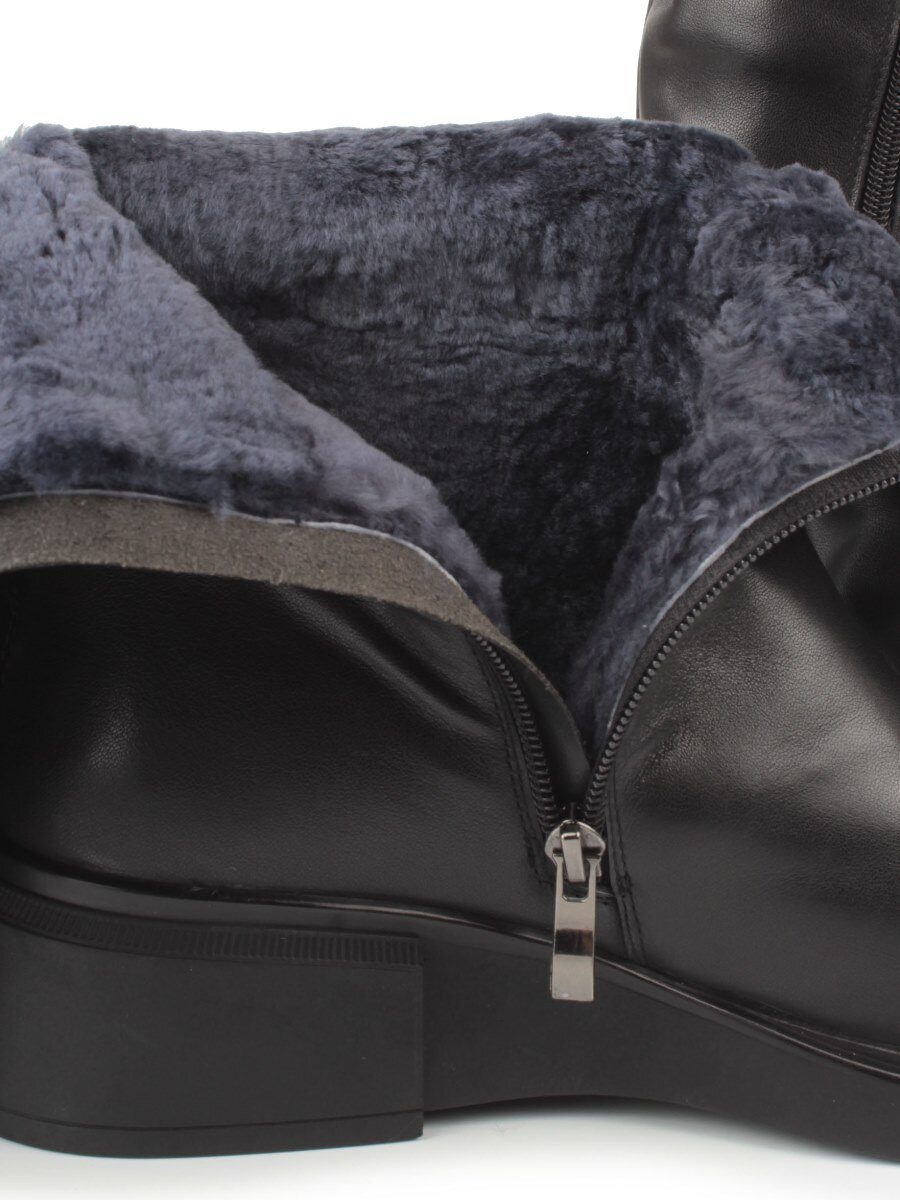 Черный Сапоги зимние женские из натуральной кожи с натуральным мехом